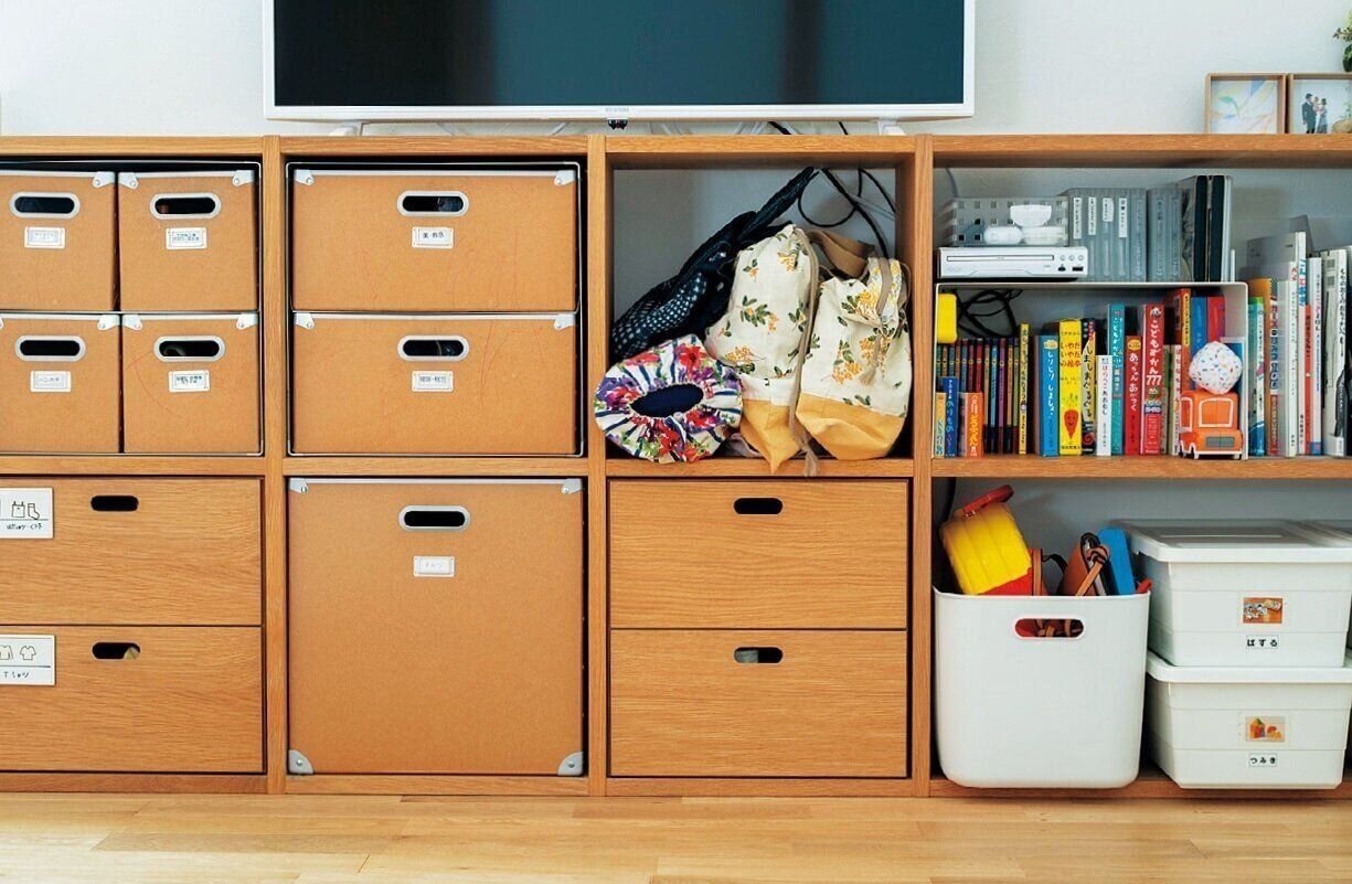 「夫の連れ子は元々片づける習慣がなかったようで、再婚当初は不安がありました。そこで、全員に同じ棚と箱を与えて、『○○はここに入れるんだよ』と指定したら、ちゃんとできるようになったんです。学校でも各自決められたスペースがありますよね。それと同じで、大人が片づけしやすい環境をつくってあげれば、片づけられない子はいないということ! “自分の物を自分の場所で管理する”とルール決めすれば、責任感が生まれ、整理能力が高まります」。