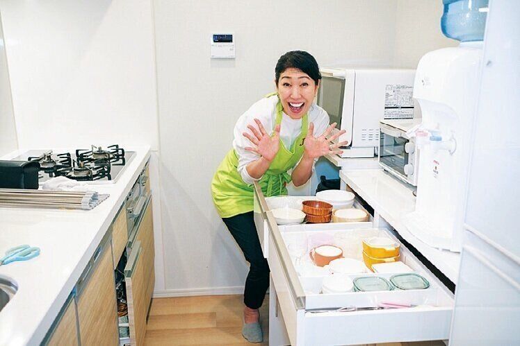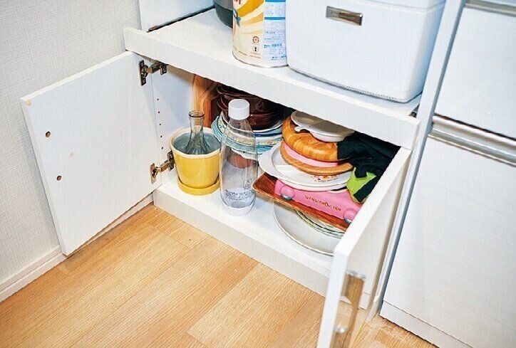 「私にとってひざ下の収納は地下室と一緒(笑)。めったに使わない皿はそこに埋めて視界から消せばOK。よく使う物・使わない物を分けて収納場所にメリハリをつけると普段の家事が格段とラクに」。