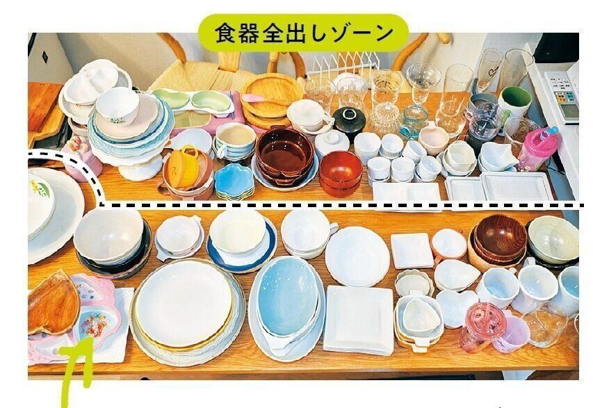 布川さんが選んだのは茶碗、お椀、取り皿、メイン皿、マグカップなど。「食器はたくさんあるけど出番が多いのはこれだけでした」(布川さん)。「毎日使う物って意外と少ないのよ~」(純子さん)