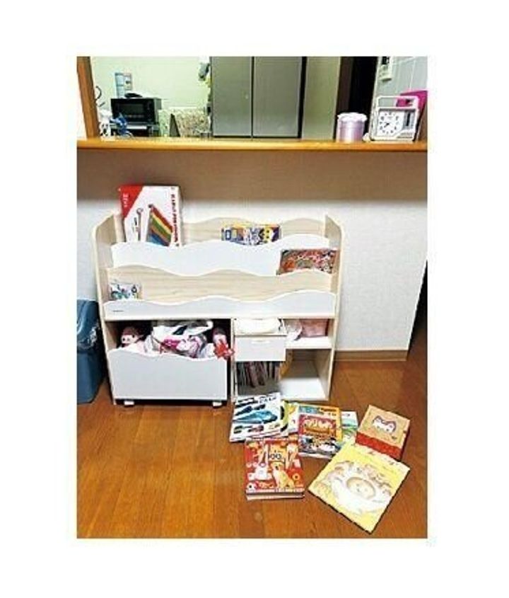 使った物をカウンターの上にちょい置きしているうちにすっかり物置き化。絵本棚周りもおもちゃと本が雪崩に。カウンターと収納の機能は完全停止。