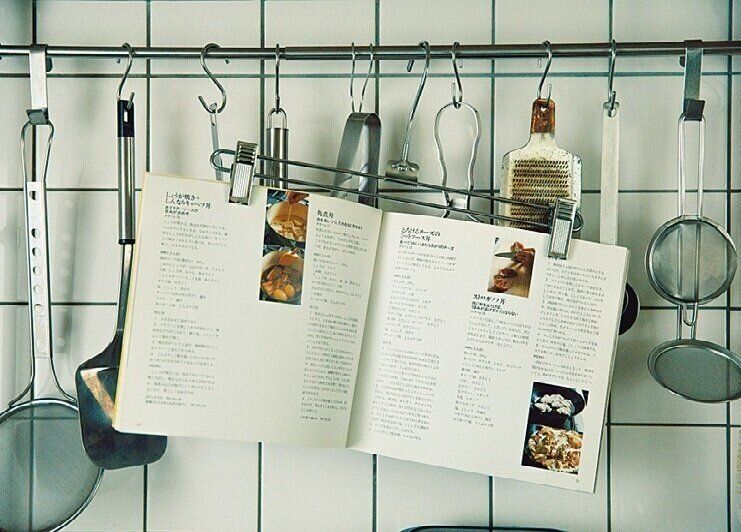 レシピ本はパンツ用ハンガーで吊るす
