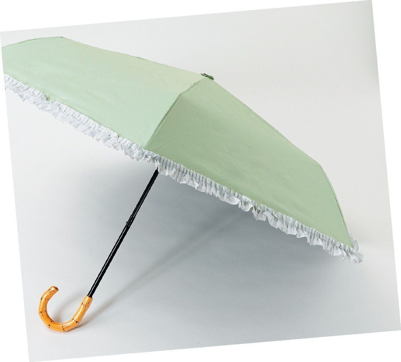 「晴雨兼用折傘フチフリルバイカラー」(グリーン)「UVハット紐付き」(ネイビー)