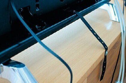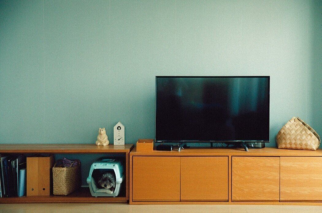 震度6強でテレビが倒れたことを教訓として、家電の固定を徹底。「電子レンジなども、下に振動防止のゴムやシートなどを敷いておくと安心です」。