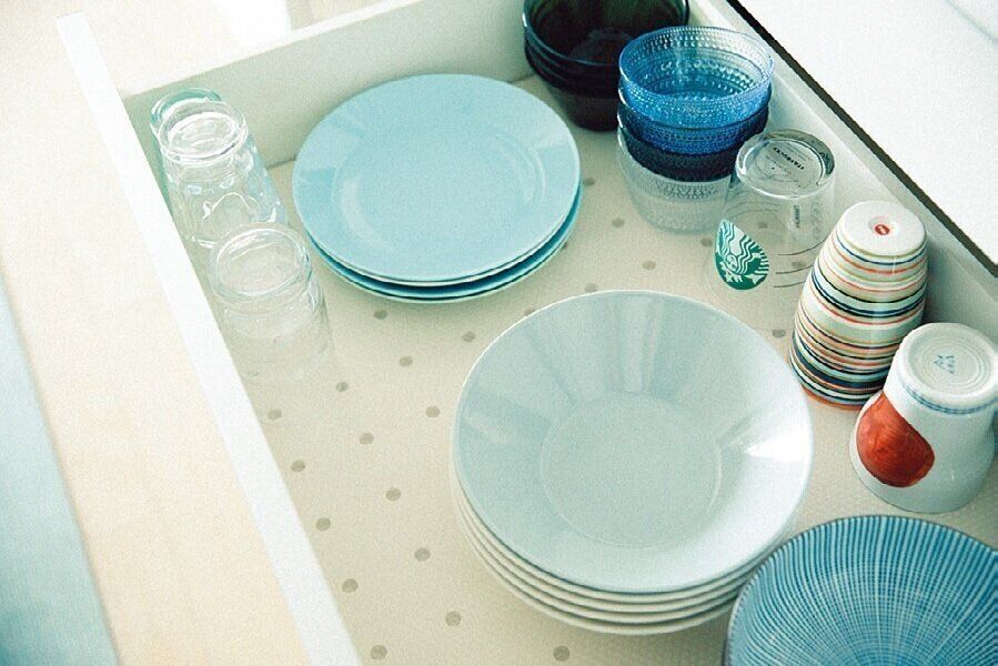 食器は表に出しっ放しにしない。引き出しの中には滑り止めシートを