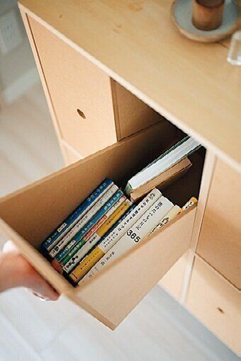 本は大きさや厚みがさまざまなので、ここの棚に収まるだけと決めて物量をコントロール。棚に入らなくなったら上限オーバーなので処分します。