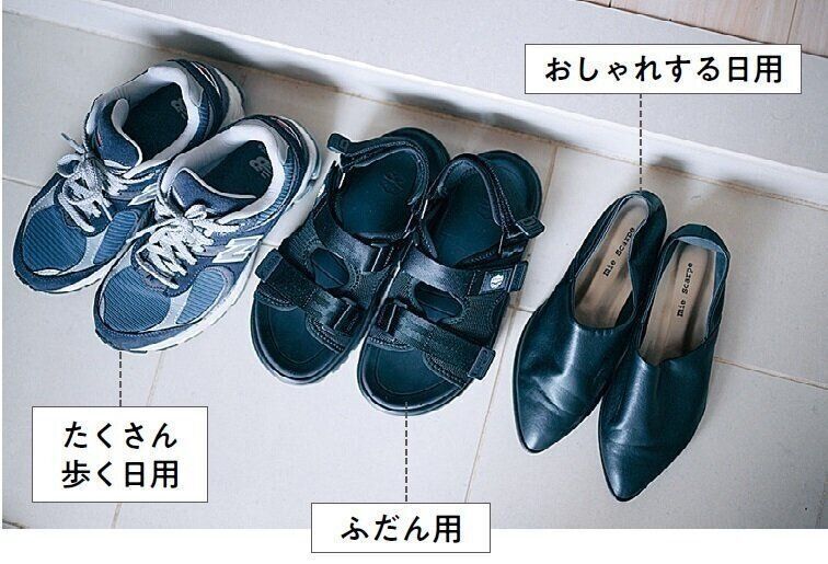 昔は20足以上持っていたけど、今、夏のふだん使いは3足だけ。靴はファッションアイテムであり歩くための道具でもあるから、デザインが好きで履き心地も良い物だけを厳選して持つようにしています。