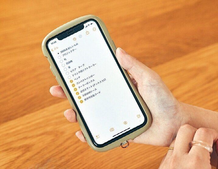 欲しい物を思いついたら、スマホのメモ機能を使ってリスト化。「夫と情報共有することで、本当に必要な物かどうか見極められるし、一緒に検索してベストな物を探せます」。