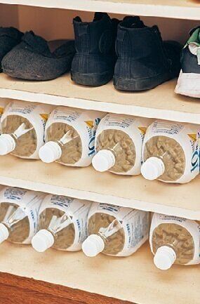 ●靴を減らしたら防災用の水ストックを置くスペースができた