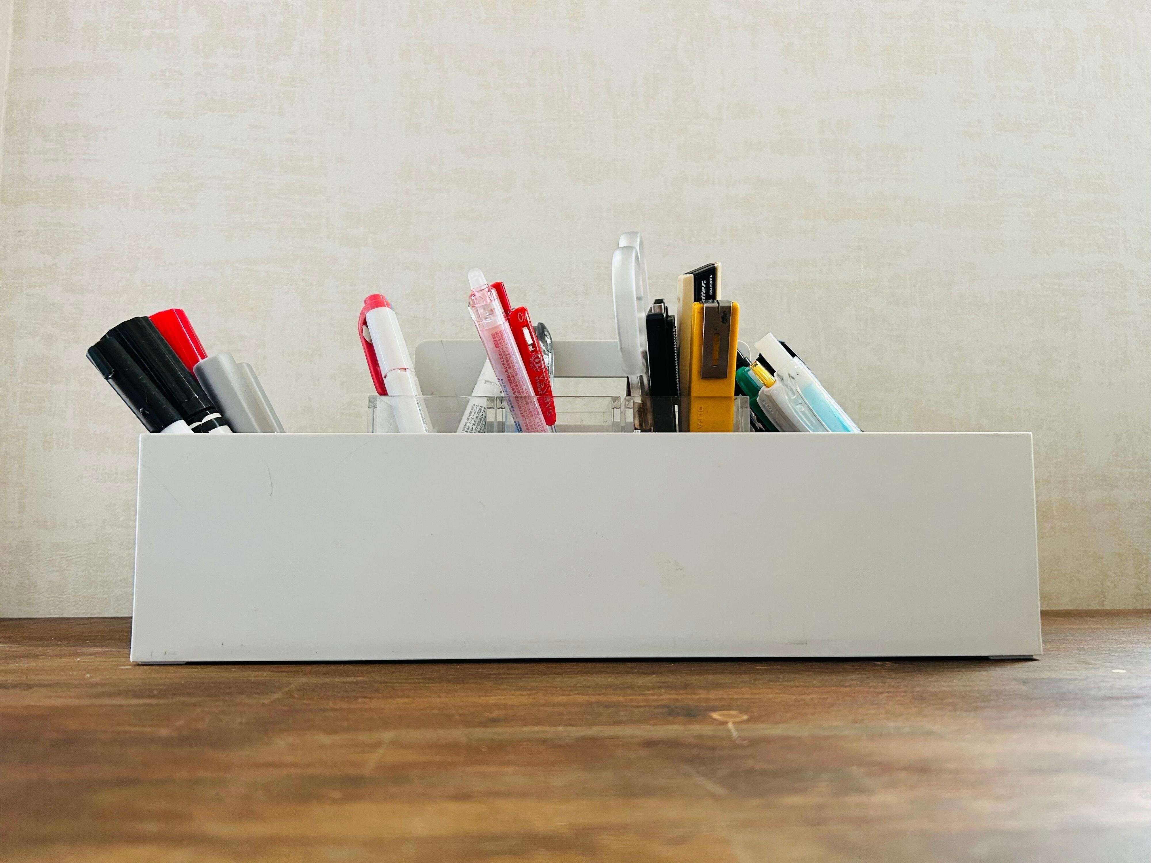言わずと知れた大人気収納アイテム「ポリプロピレン収納キャリーボックス」です。取っ手がついているので持ち運びにとても便利。仕切りの取り外しもできるので、工具や文房具などいろいろなものの整理整頓に活用できます。筆者宅では、文具と救急セットの収納に使っています。