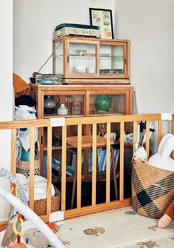 「うちにも物を押し込んだまま手つかずの『魔窟』、あります~。愛する雑貨たちも子どもが触ると危ないから、今はベビーサークルの奥にエイッて押しやってます(笑)」。