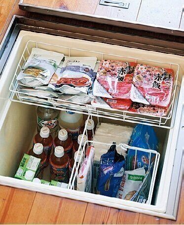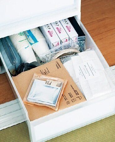 レトルト食品、缶詰などは床下収納、マスクなどの衛生用品は押し入れの引き出しと、スペースを分けて保管。日常的に使ったら補充するという方法で一定量をキープしています。