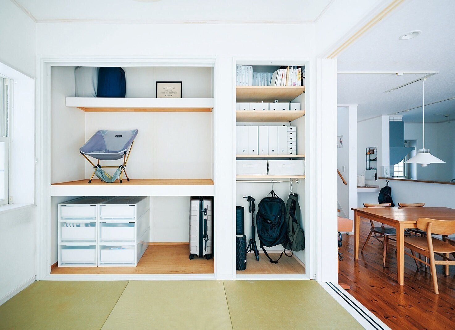 飾り用の棚や家具は古道具店に売却。「リビングを占拠していた家具がなくなって動線がスムーズに。扉があると中身が見えず、物を詰め込みがちなので、和室の扉を外して不要品を整理しました」。