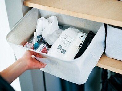 家族で使う文房具や薬類などは、ボックスで分類して押入れに。「ボックス内はキレイに整理していなくてもよしとしています。月1回程度、期限切れの物や使っていない物がないか確認し、物量を保ちます」。