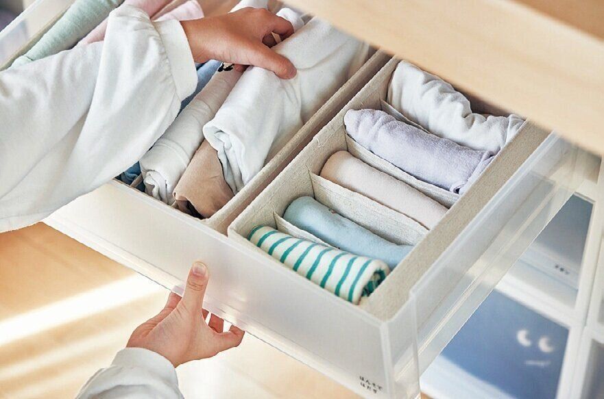 ●仕切りつきの収納ケースは子ども服がぐちゃぐちゃにならなくて便利