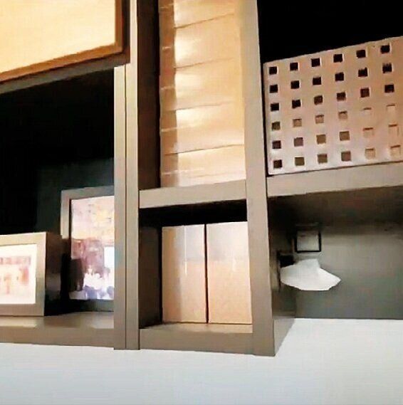 作りつけのティッシュ収納(扉を閉めても横から紙が取れる仕様!)の近くにストックを置いてその場で交換。その都度取りに行く手間が省けてラクですよ~。