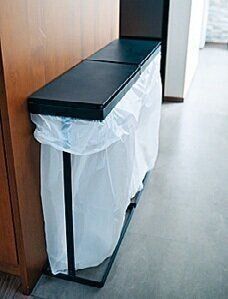 箱じゃないから地味に面倒なゴミ箱掃除が不要なうえに、ゴミがたくさん入る!蓋がついているので臭いも予防できてゴミ袋の交換もメチャラク。超優秀です!
