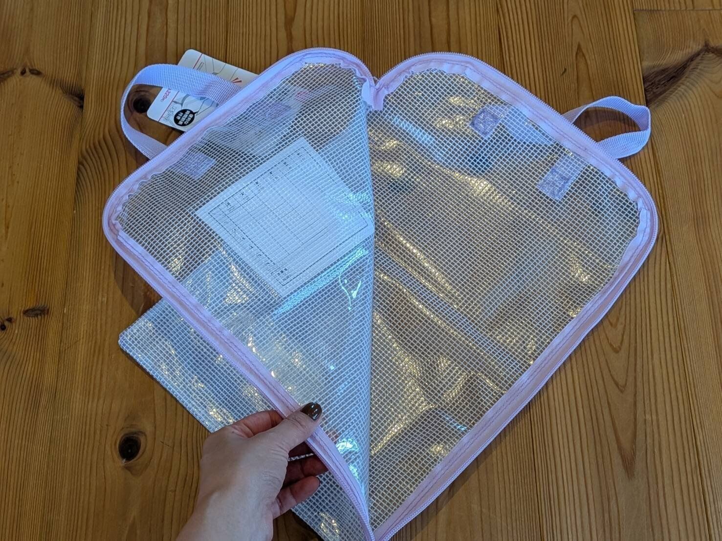 その点ダイソーアイテムは、L字型に大きく開く仕様。開口部が大きいことで、入れるのも取り出すのもノンストレス!子どもが面倒くさがって連絡袋に入れてくれないと悩んでいるかたにもオススメですよ。