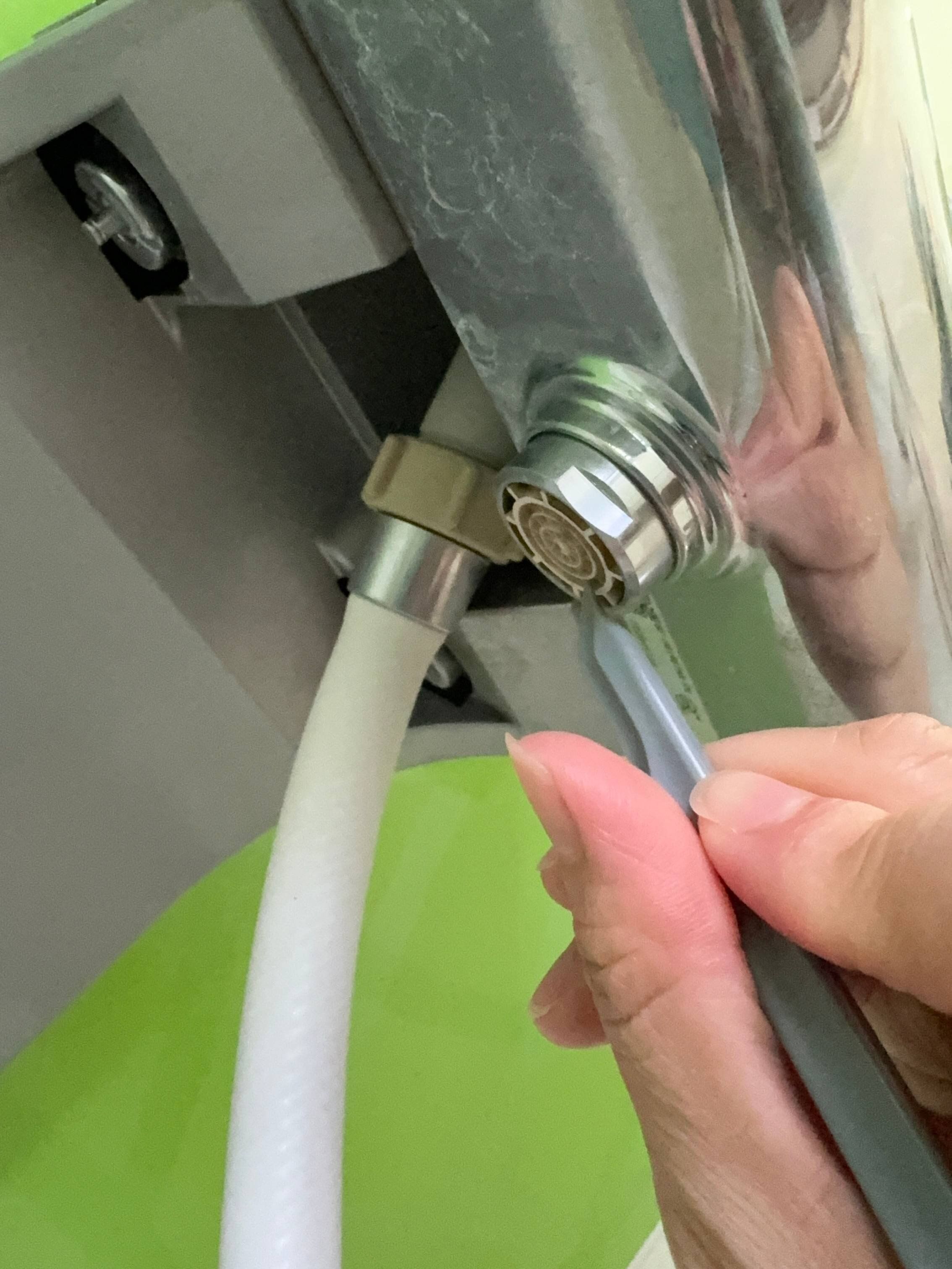 水が出てくる箇所が複雑な形状になっているので、お掃除ヘラの出番。