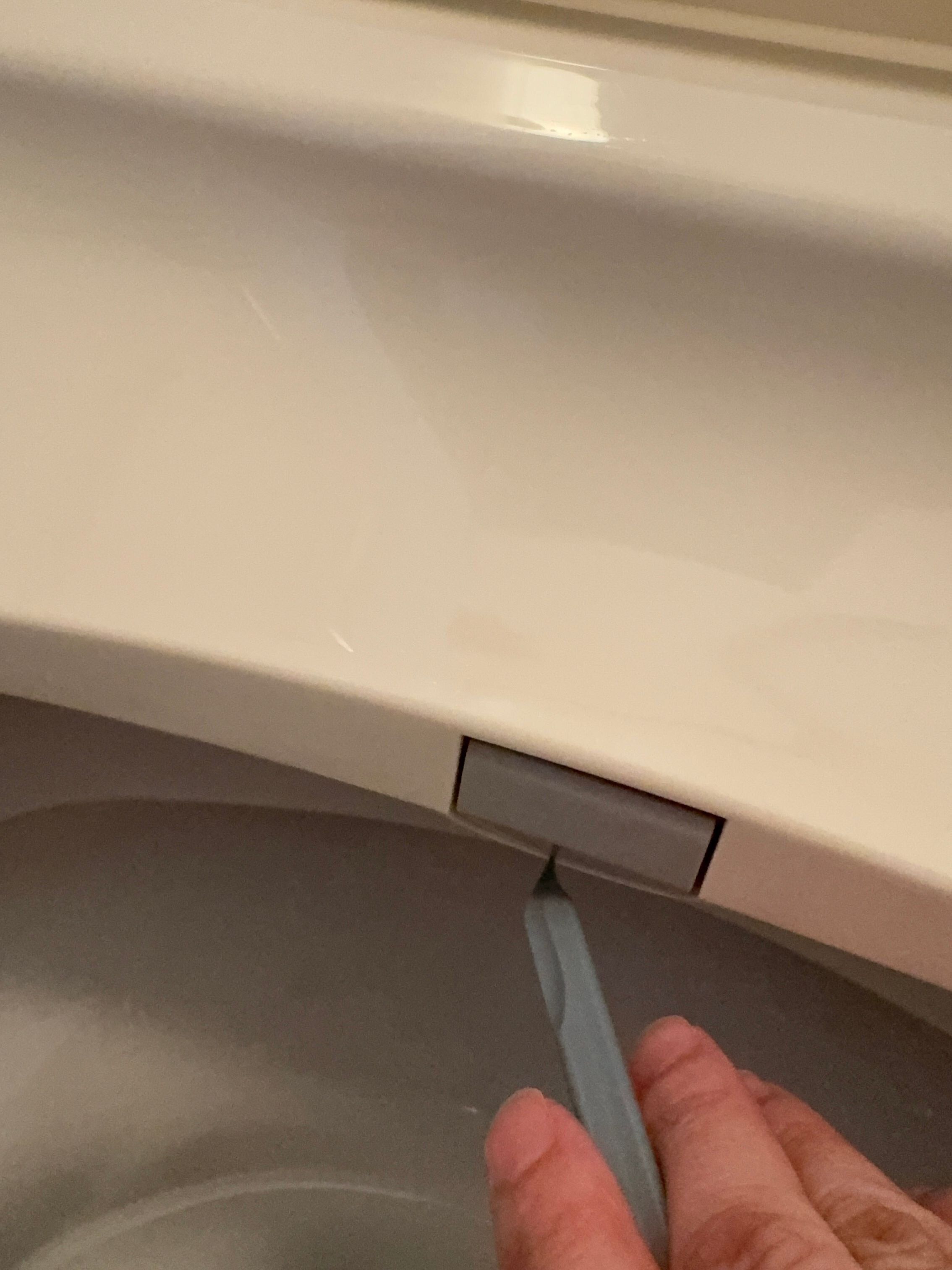ここはどうしても毎回用を足すたびに汚れてしまう場所。できれば頻繁に掃除したい場所ですが、ブラシだけでは汚れが掻き出せないので、このヘラでカリカリしちゃいましょう。