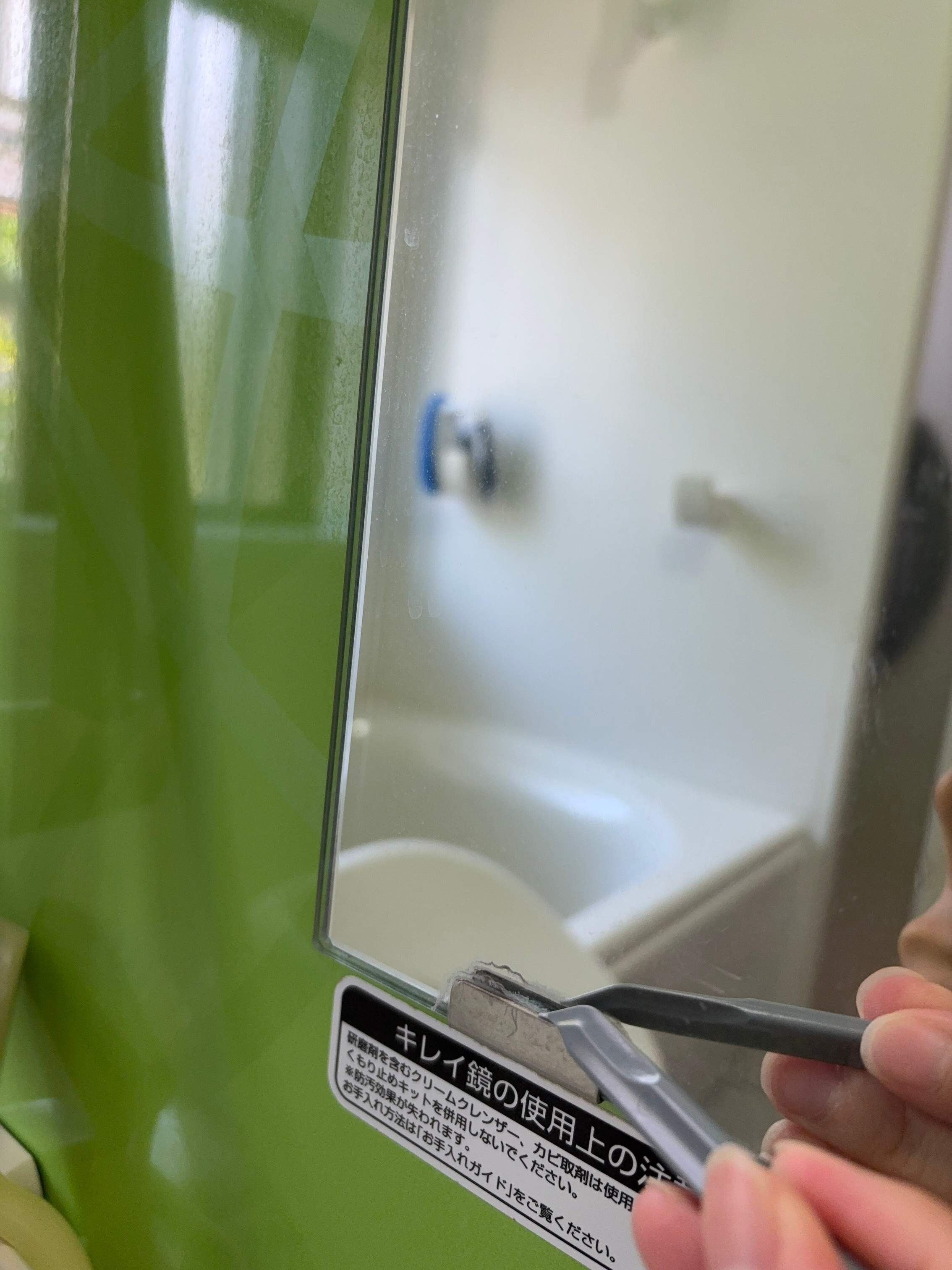 浴室の鏡のつなぎ目は酸性洗剤と共に