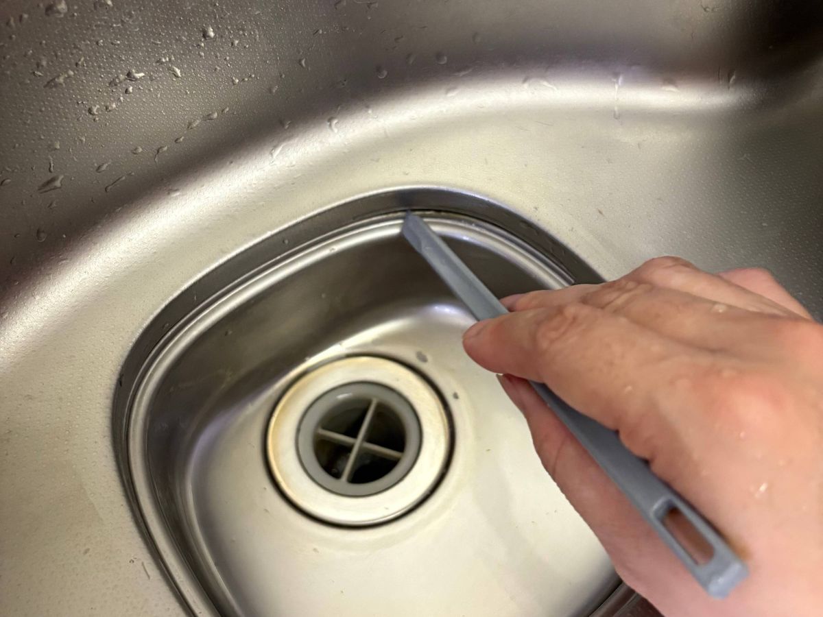 ブラシが入らない排水口の溝もしっかり掻き出します!