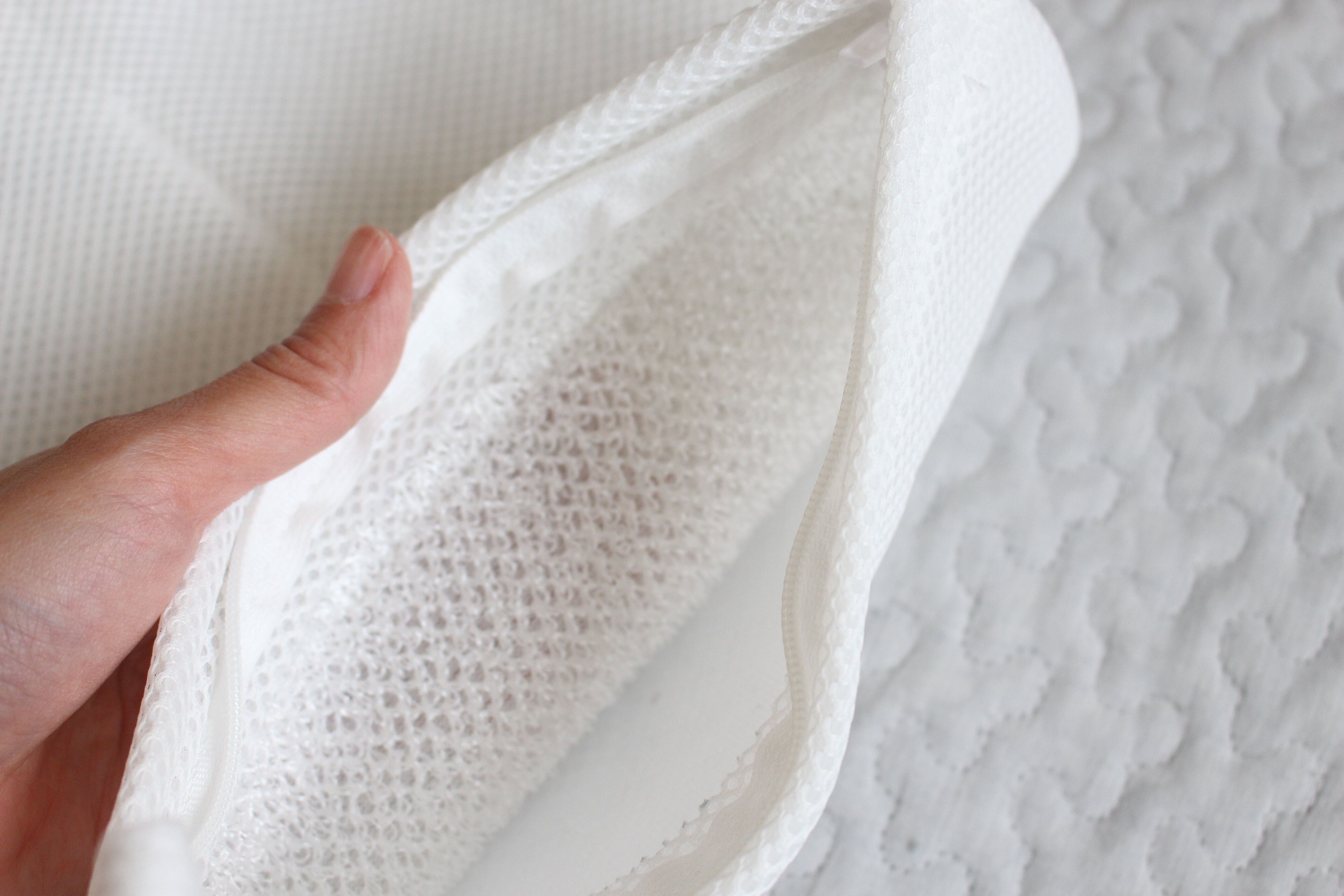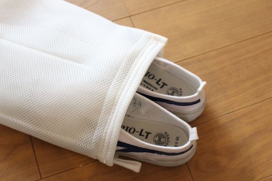 ネットの内側は、ザラザラとした素材になっており、この部分で汚れが落ちる仕組みに。念のため、私は上履きの裏側(足底)だけ軽く予洗いしてからネットに入れて洗濯しました。