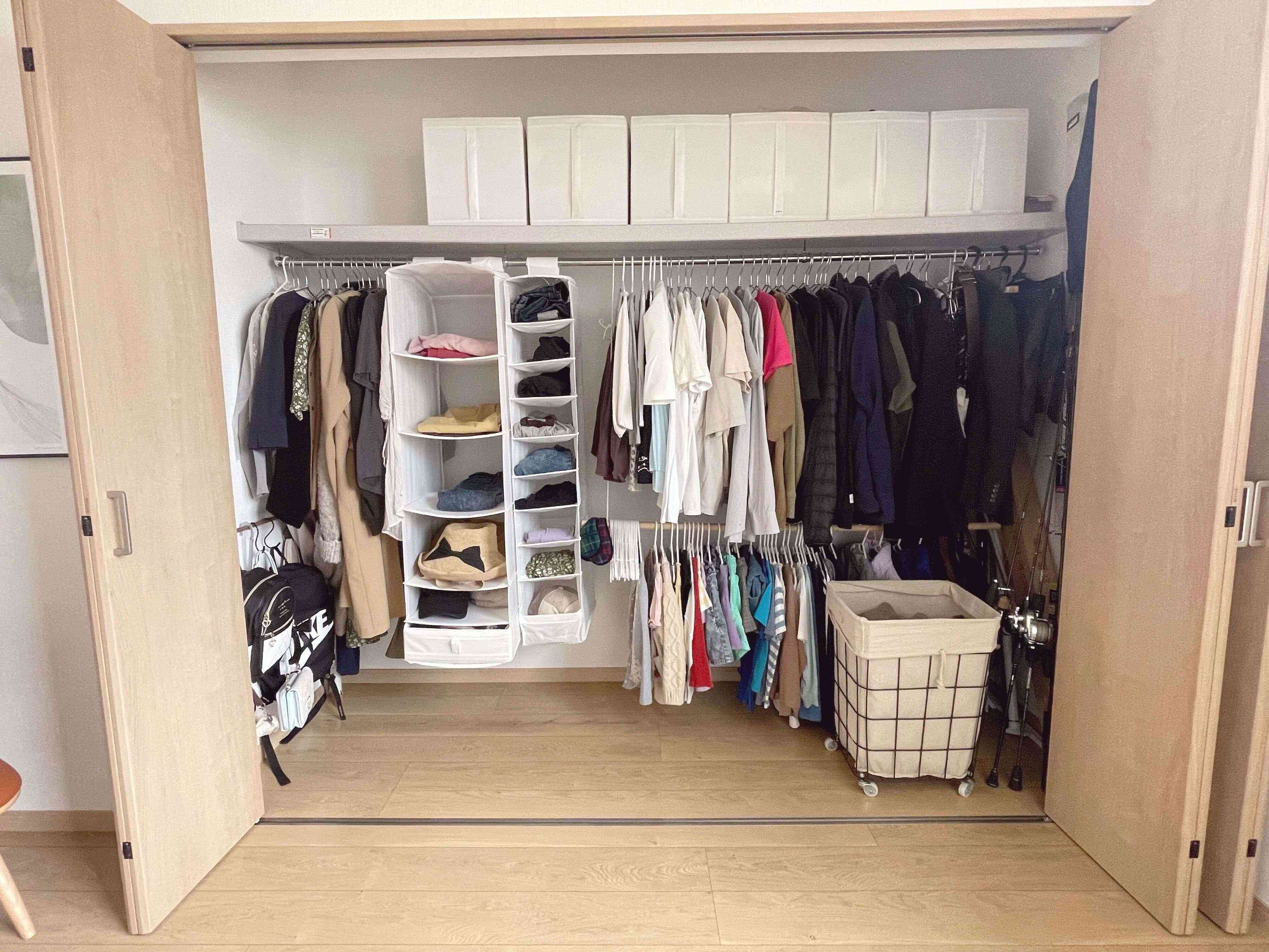その場合は、全体の量で物量を調整するようにしています。今回は引っ越しにより、大量のものを処分してきたので、備え付けの収納に余裕で収まりました。