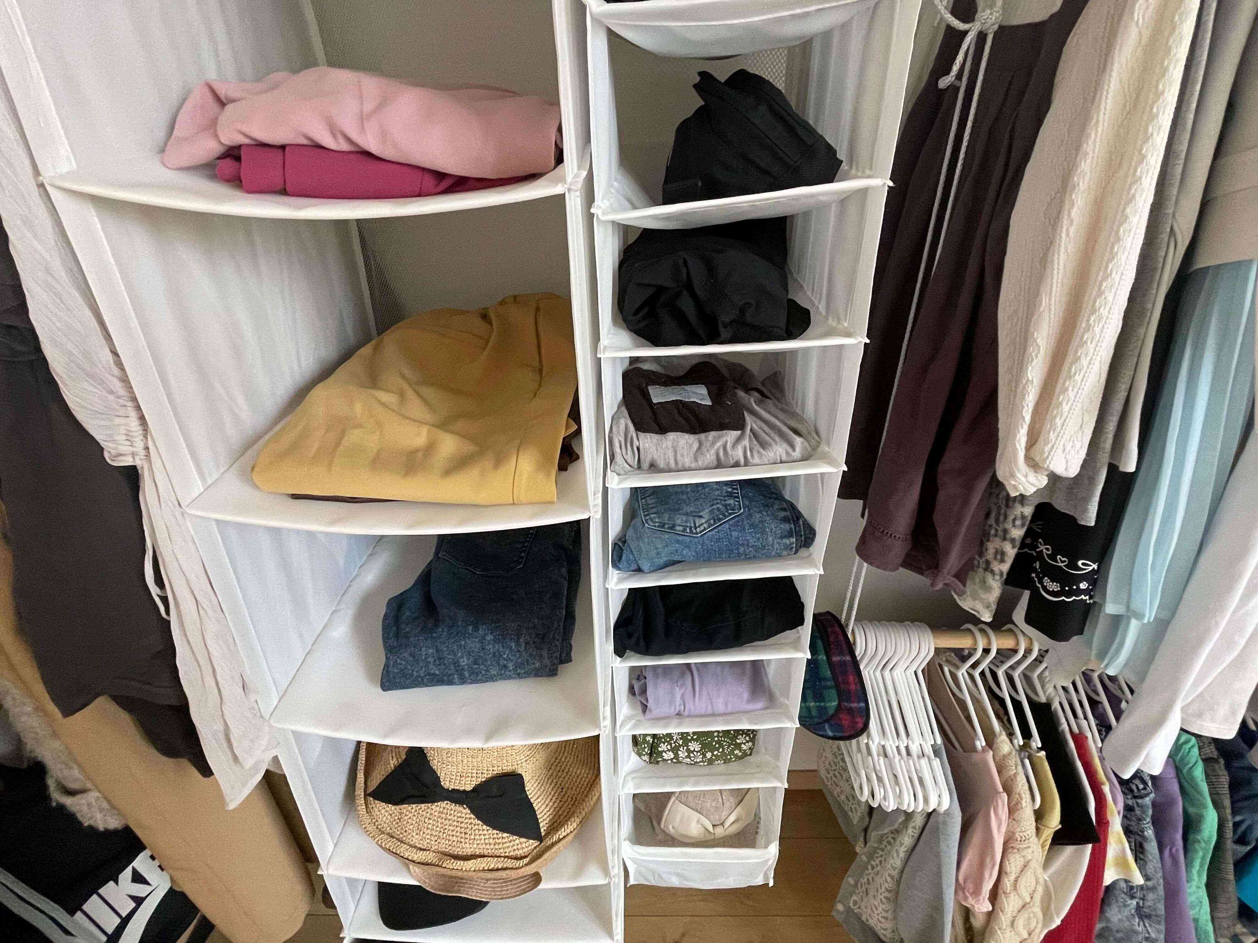 ニットやズボンなど、畳んだ方が管理しやすい場合は、吊り収納で対応すれば問題なしです。