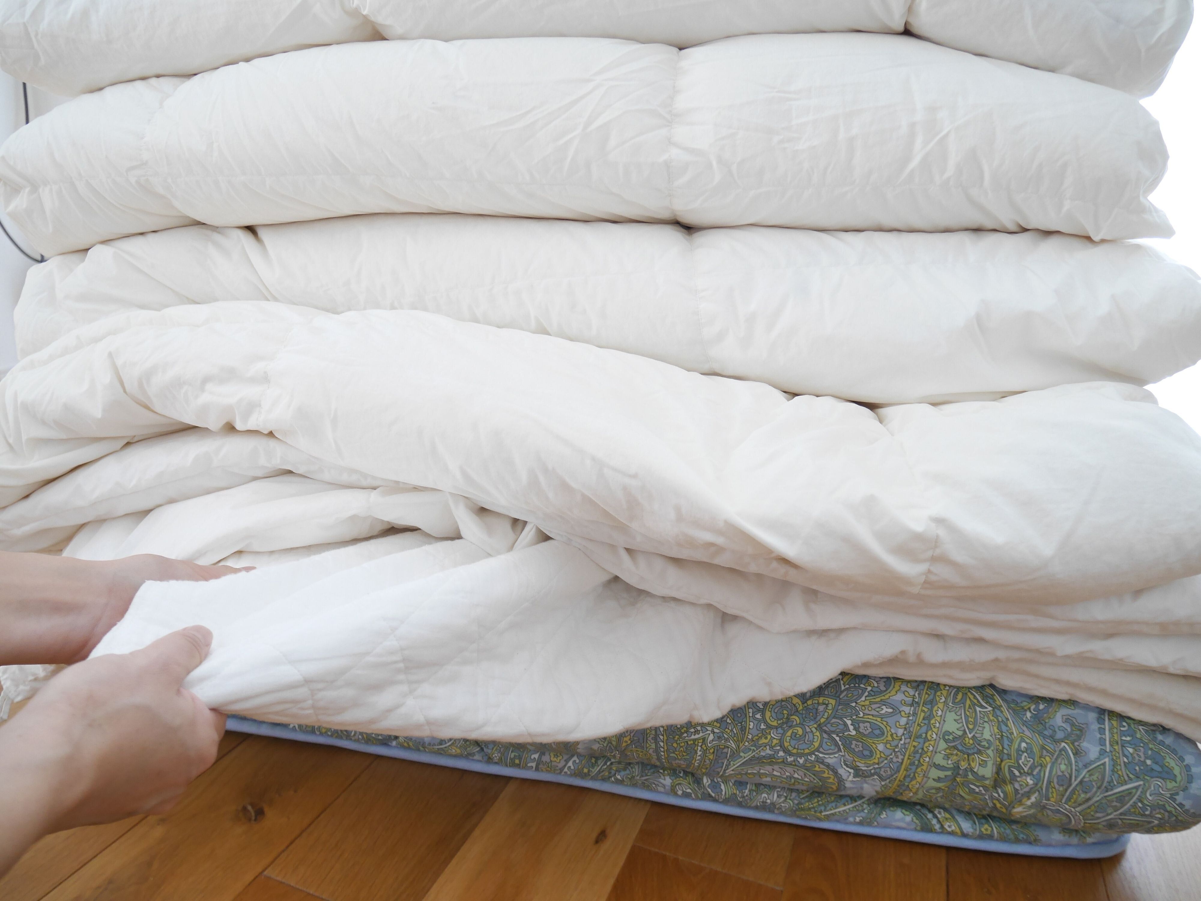布団は積み重ねて収納すると、欲しい布団を引っ張る時に上下の布団がついてきたり、間に埋もれて探しづらかったり、衣替えの度にストレスですよね。そこで、布団をケースに入れて「立てる収納」にすると、驚くほど快適になるそうです。