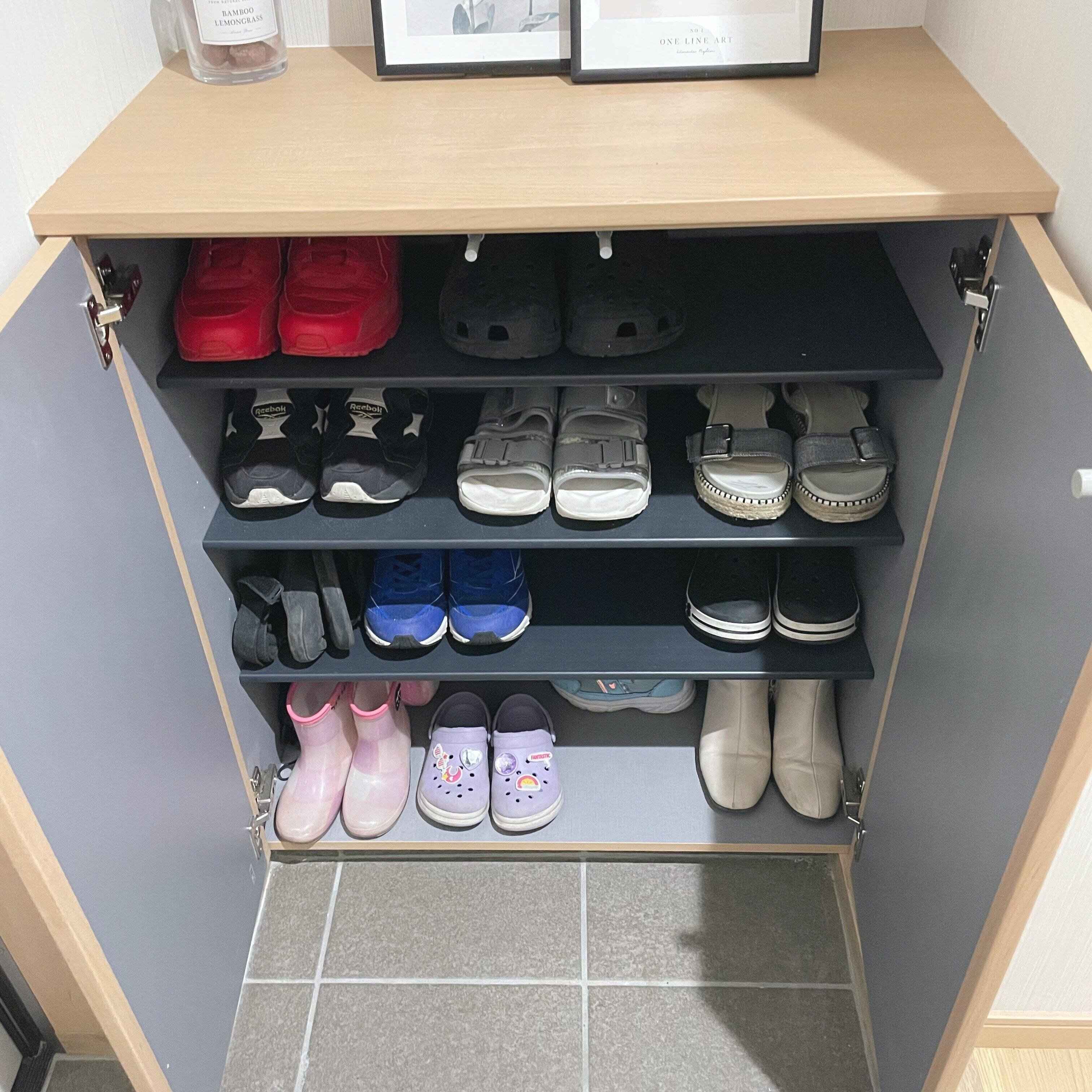靴の定数を見直し、収納スペースをつくってあげる、など、根本的な見直しをしてあげると、片づけをがんばらなくても、すっきりをキープしやすいです。
