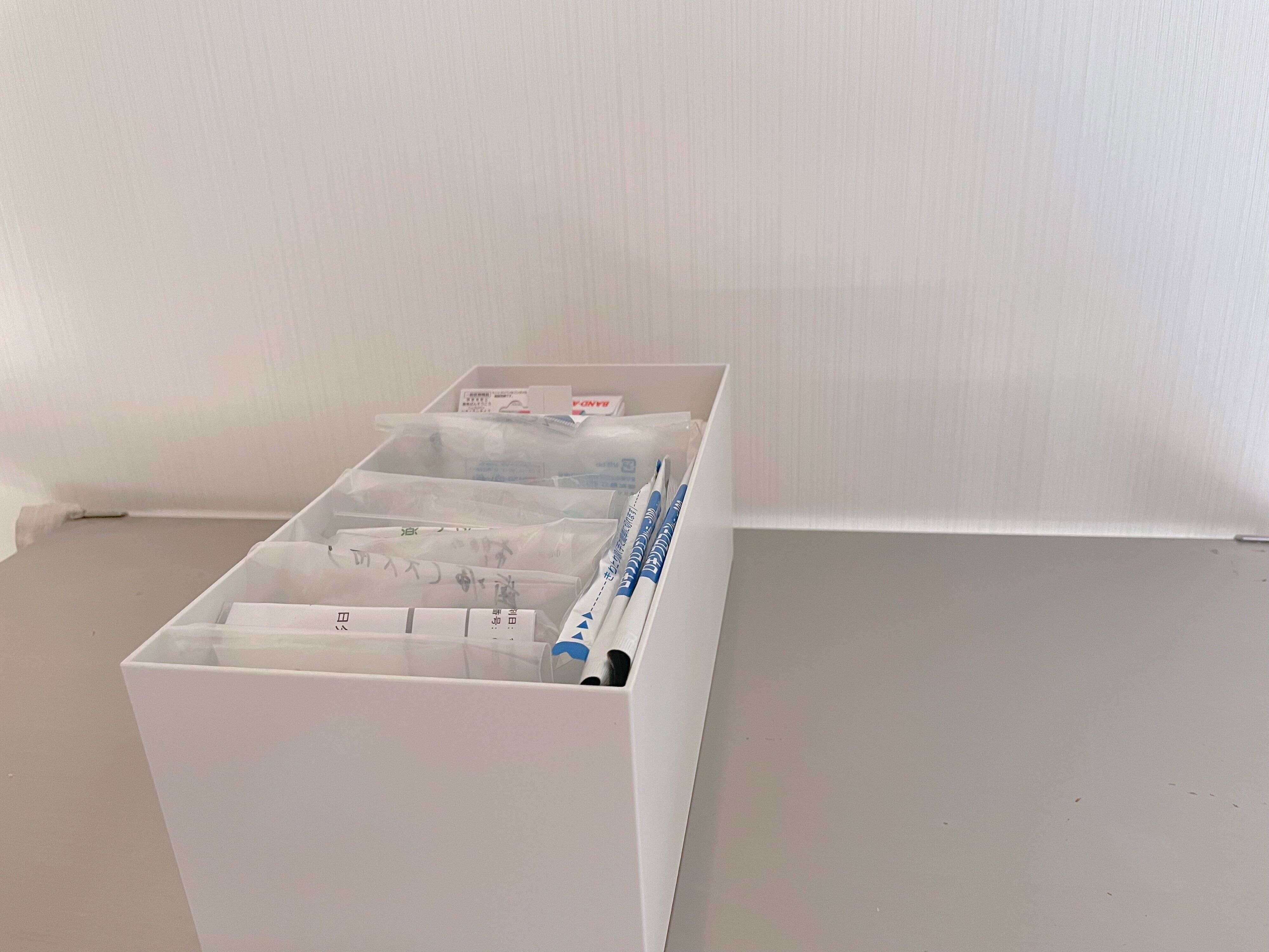 細々とした物が多いクスリですが、専用の薬箱を使わずとも、すっきり収納することができます。