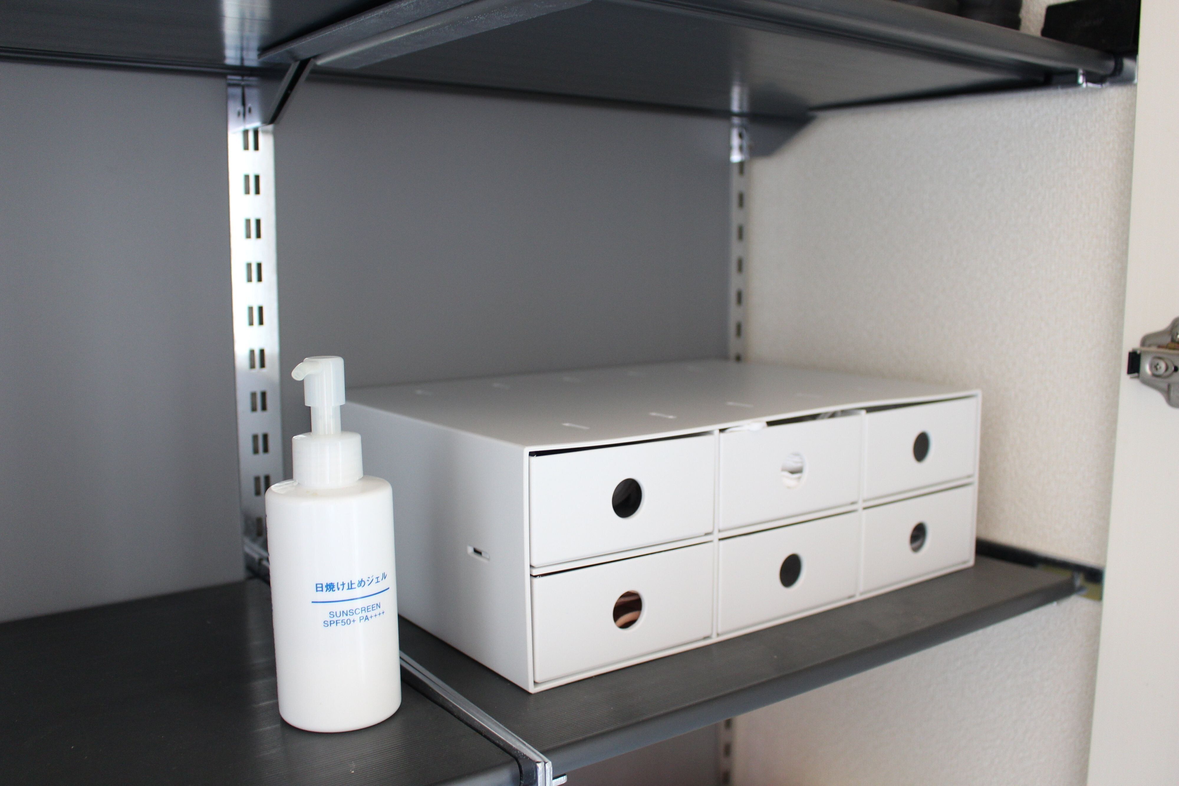 外出時にさっと取り出せるよう、この引き出しは玄関の下駄箱内に置いてあります。「マスク忘れたー!」と、部屋の中に戻る事のないようこの位置がベスト。
