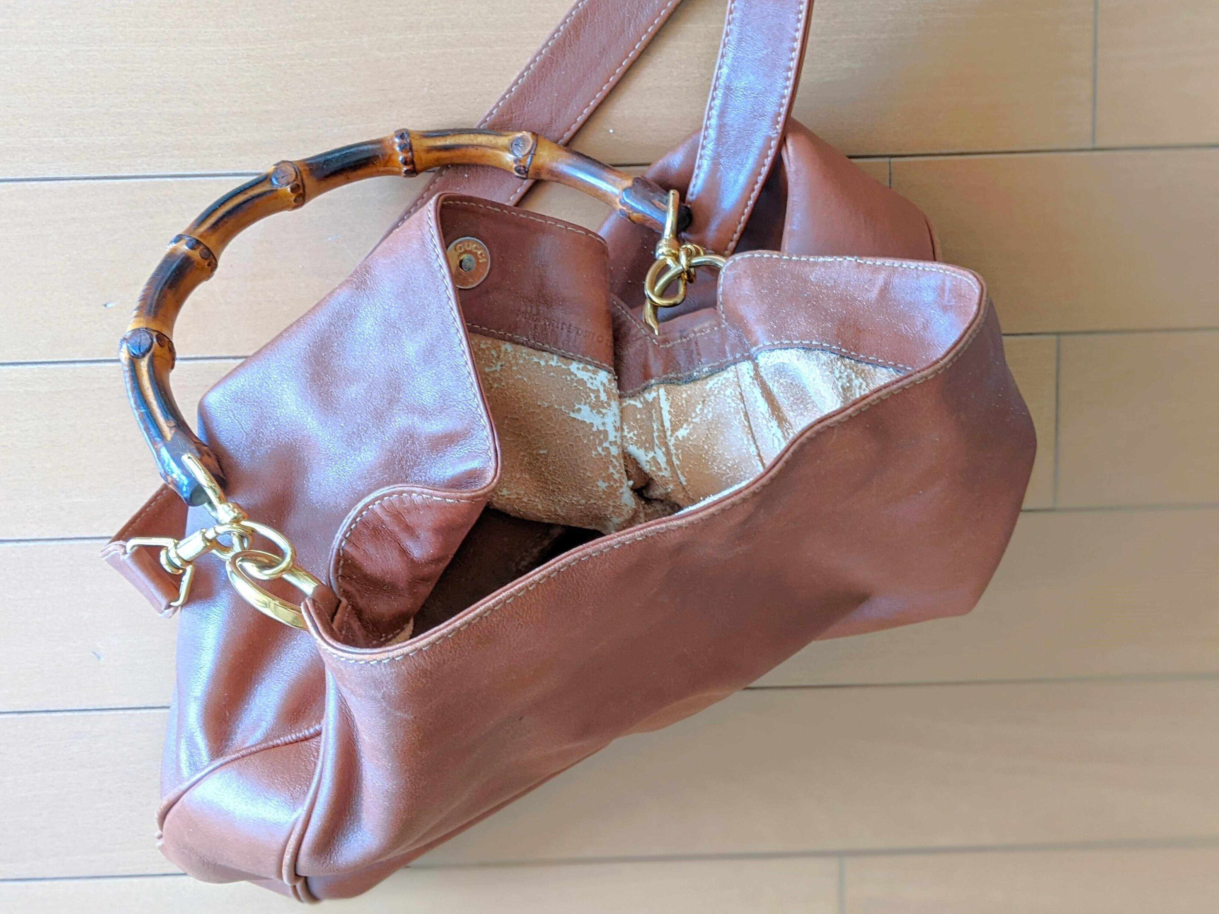 ある日、不用品買取のチラシに書いてあった「中がボロボロでもOK」の文字を目にしたことで心がザワザワ…。実は、一見キレイですが、中は革の傷みが激しく、使える状態ではなかったのです。