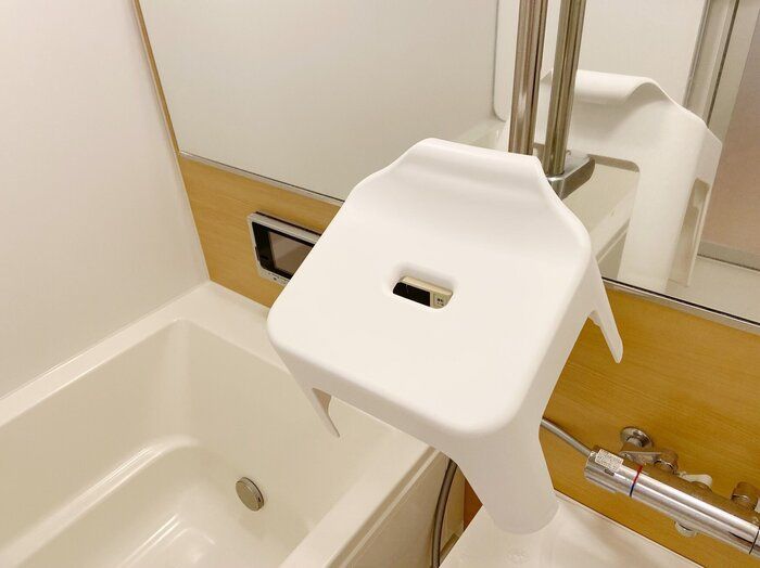 風呂イスはフックがついていて、床に置きっぱなしにしなくてすむので、水切れもよく衛生的に使えます。
