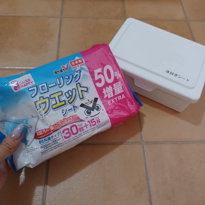 雑巾を使った水拭きもいいですが、我が家では100円均一で売ってるウエットシートを利用しています。