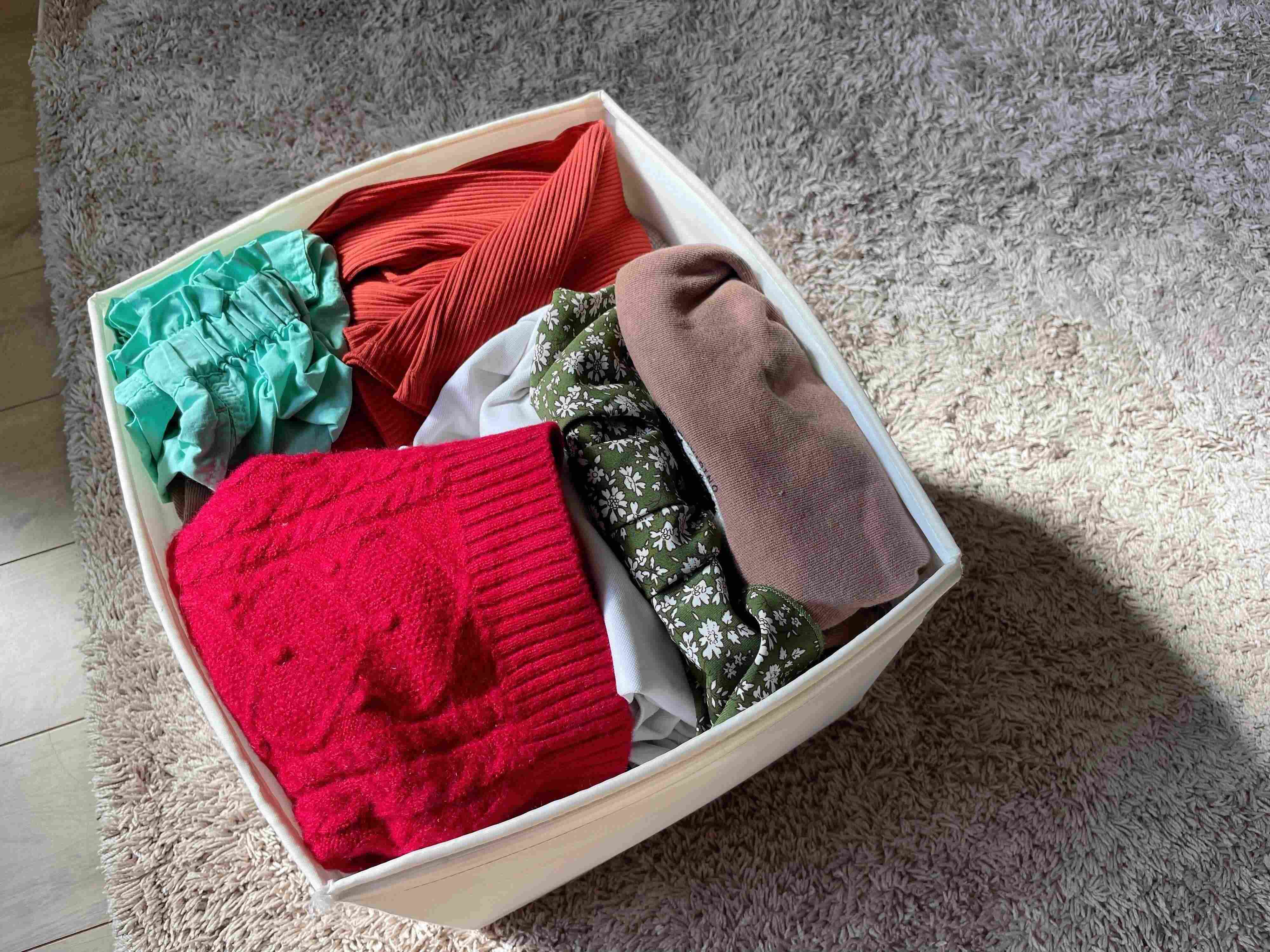 IKEAの「SKUBB」商品を3種類使って、家族4人分の洋服が全て収まりました。