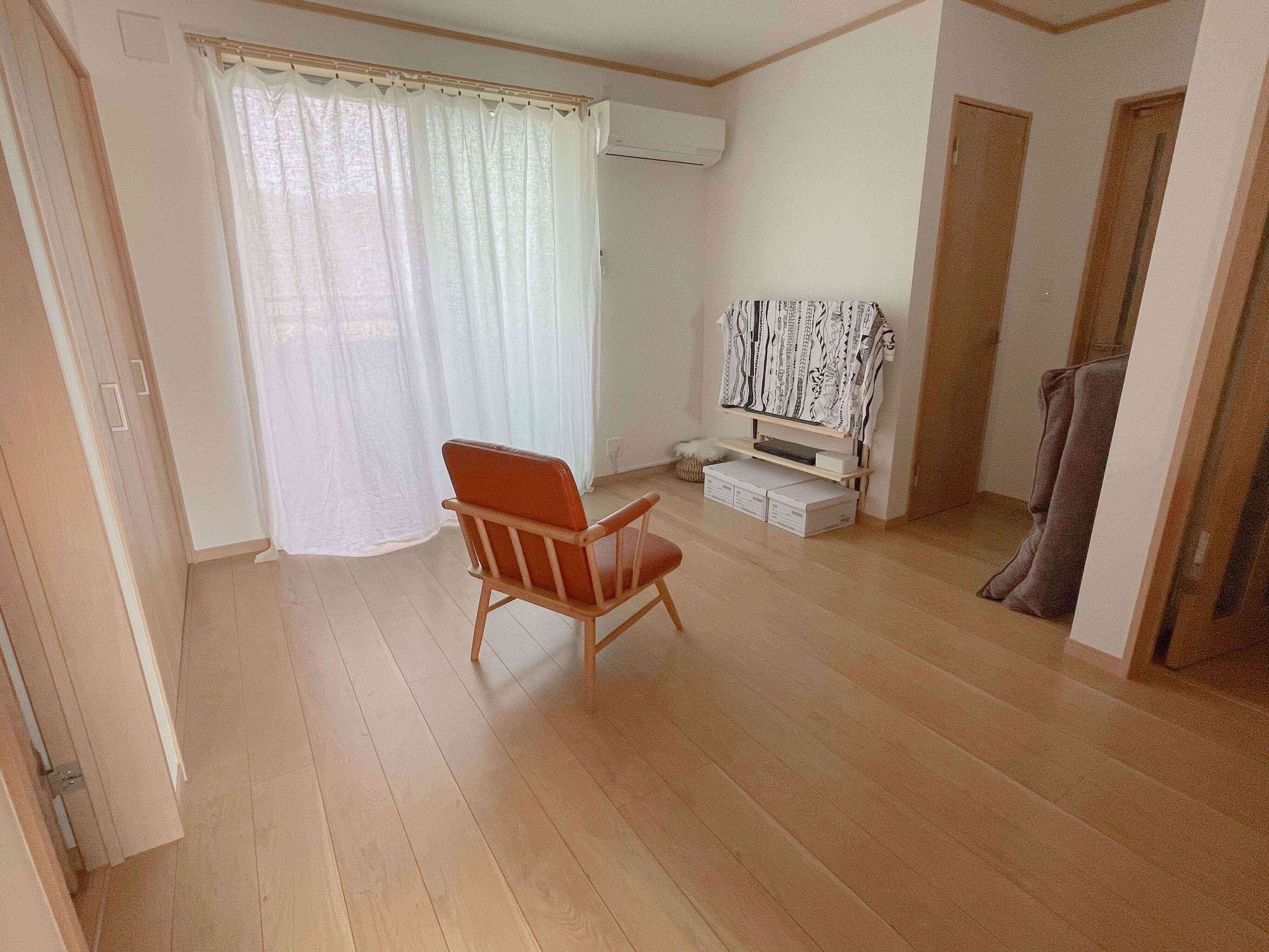 もしくは、床にラグもクッションも置かずにぽつんと「1人掛けチェア」スタイル。