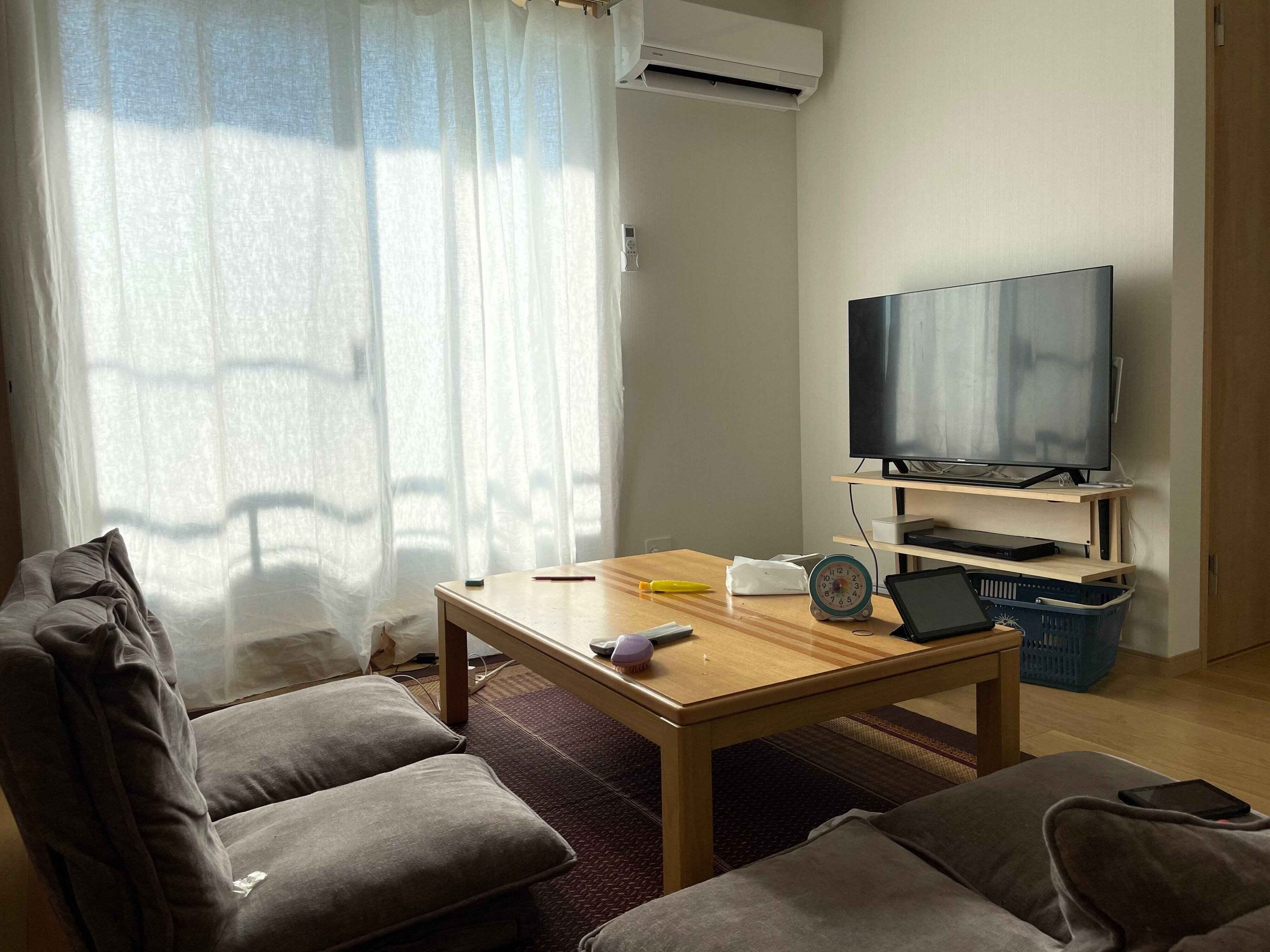 テレビはポータブルテレビが壊れたことと子どもの視力が低下したことから、大型テレビを復活させました。