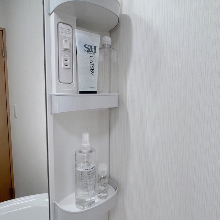 その他、モノトーンデザインの物を選んだり、コンタクト液のボトルのラベルを剥がすなどして、全体的に浮く物を置かないように統一させています。