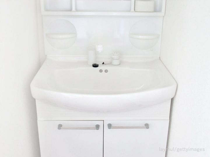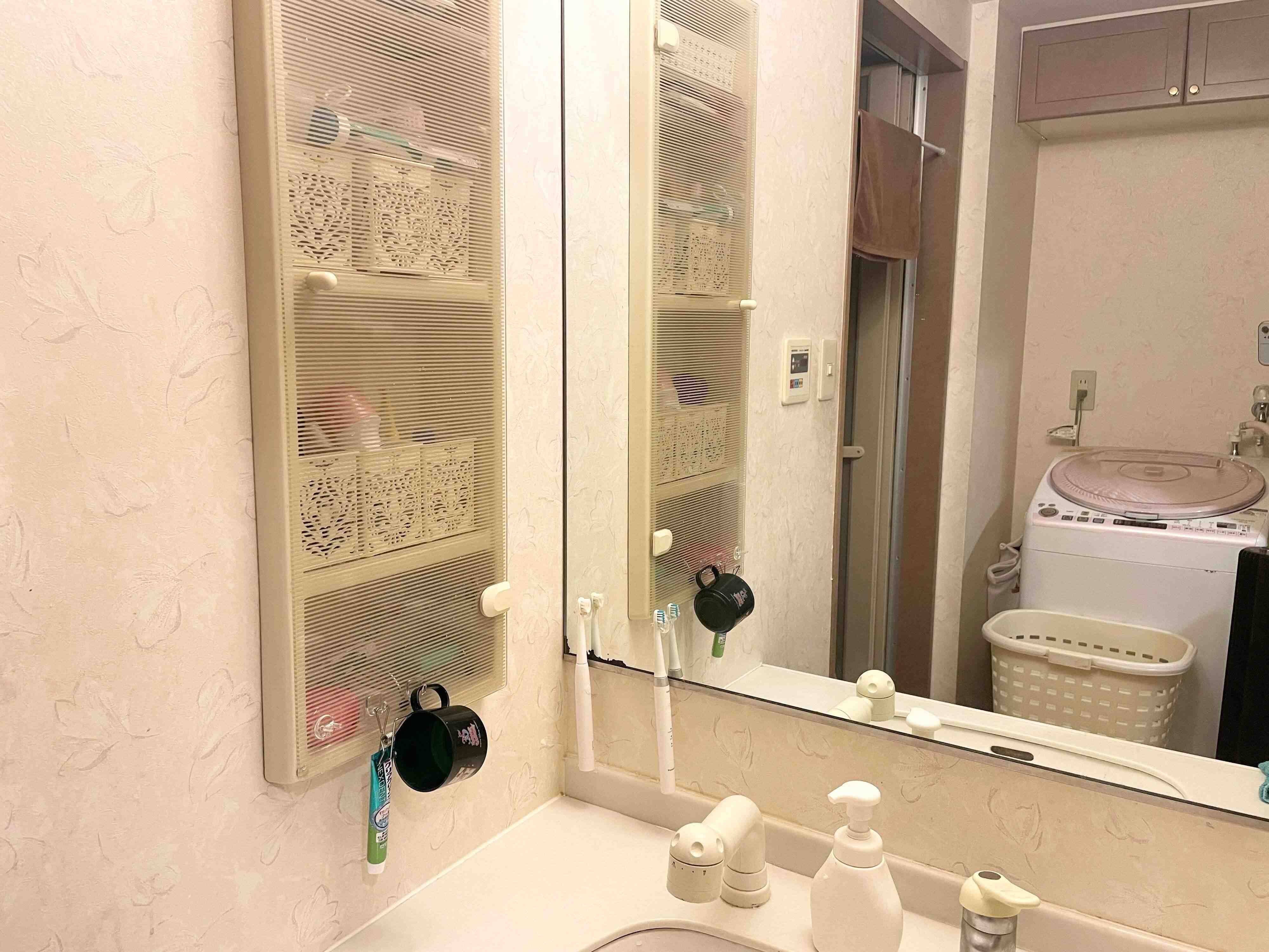 おすすめは、洗面台。スペースは広くないけれど毎日何度も使う場所だから、片づけの成果を感じやすくもあります。