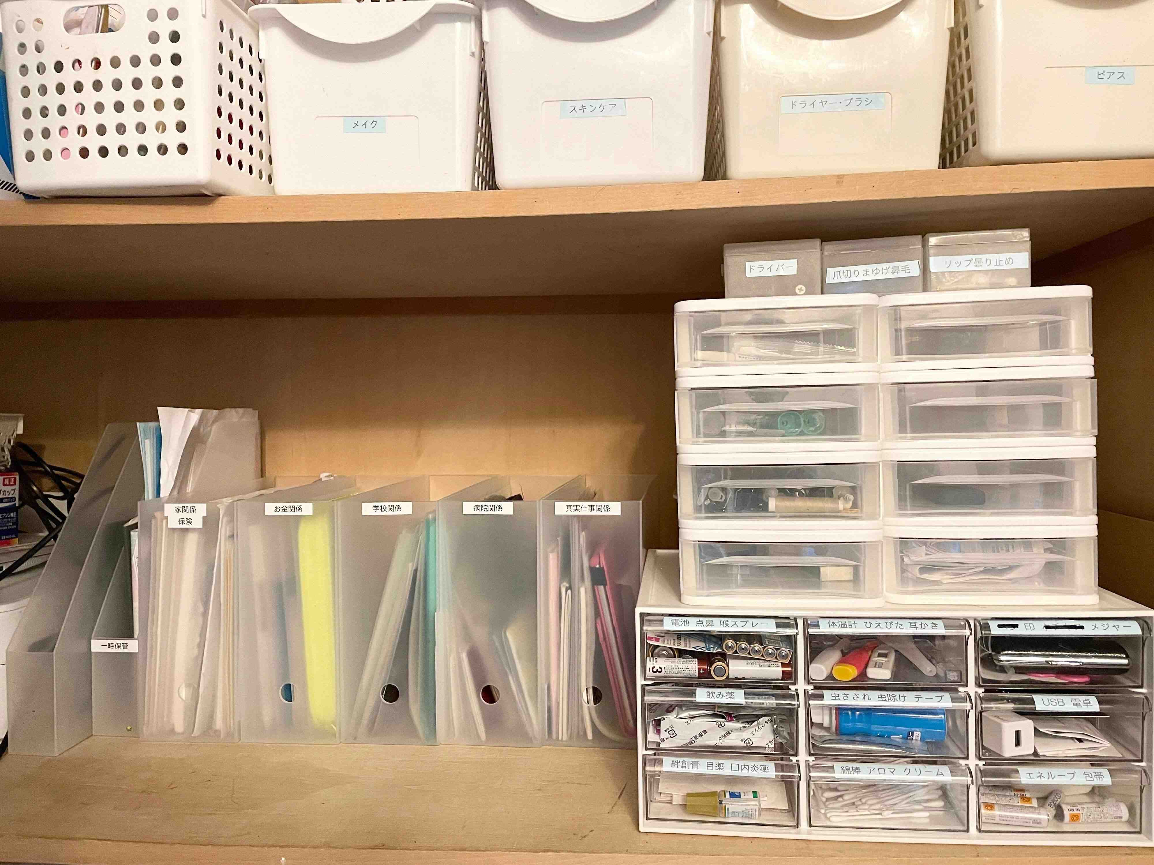 そこからさらに物を出すわけですから、中がまったく見えない収納ボックスばかりだと、少し探しにくく感じますね。