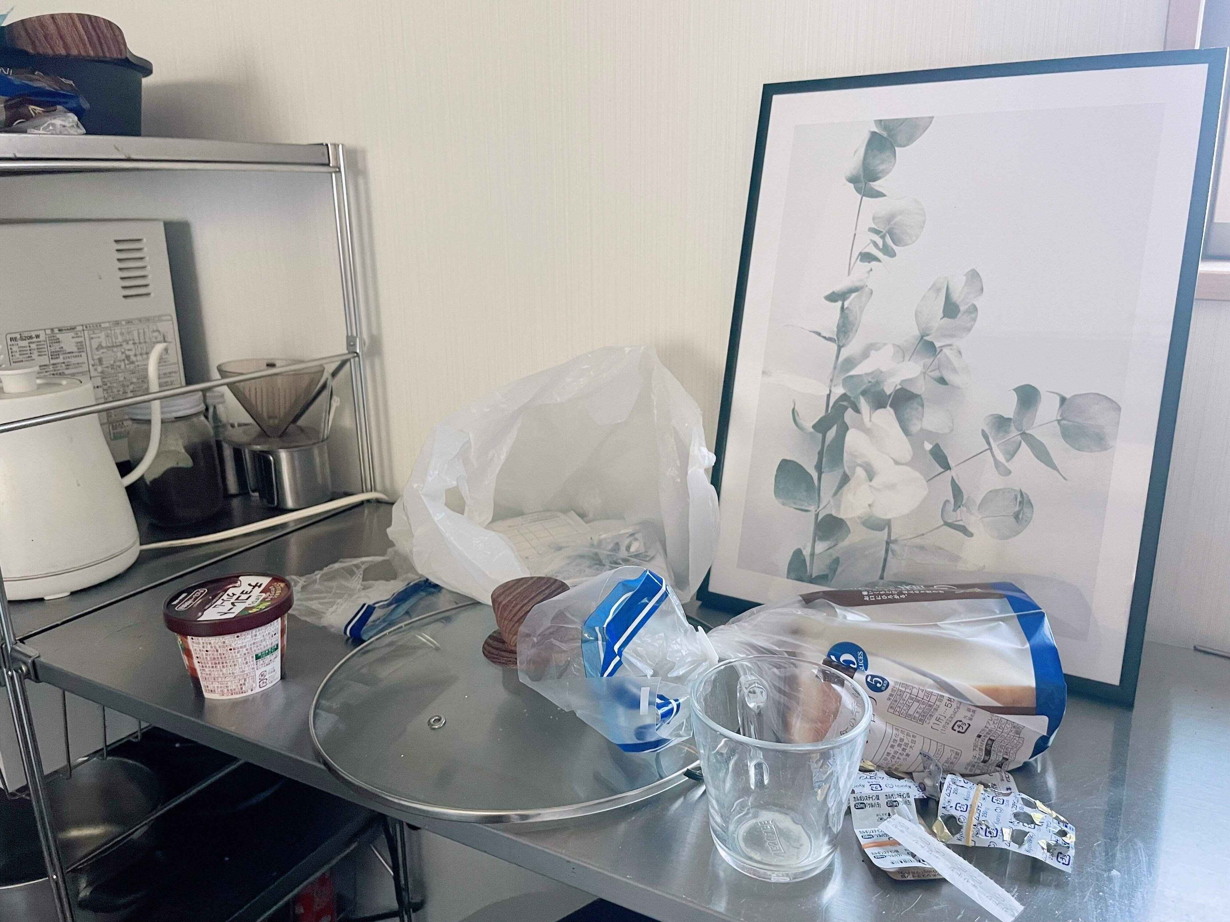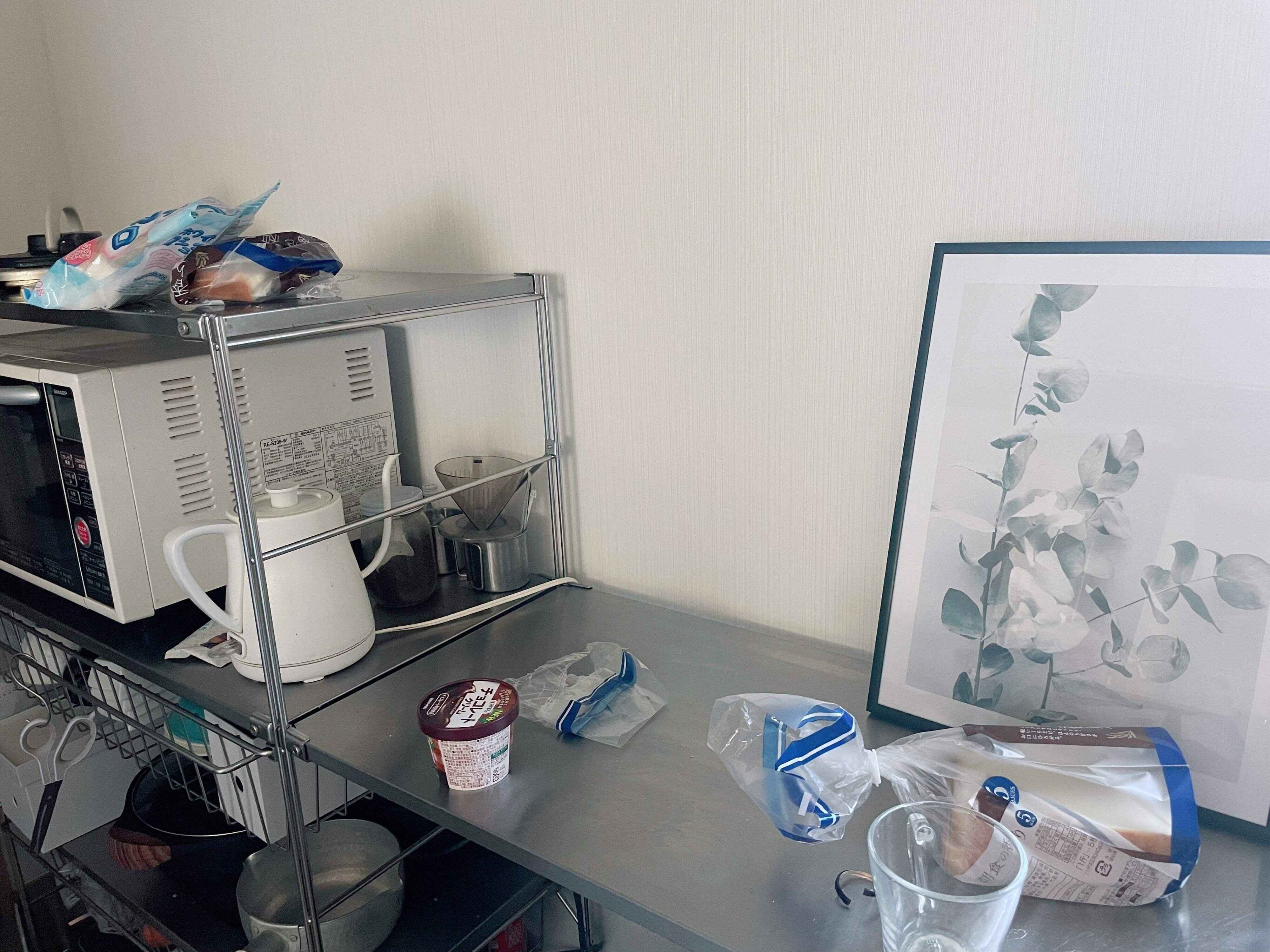 鍋と薬、コーヒーの3個を片づけただけですが、1つ前の写真と比べたら少しすっきり見えませんか?