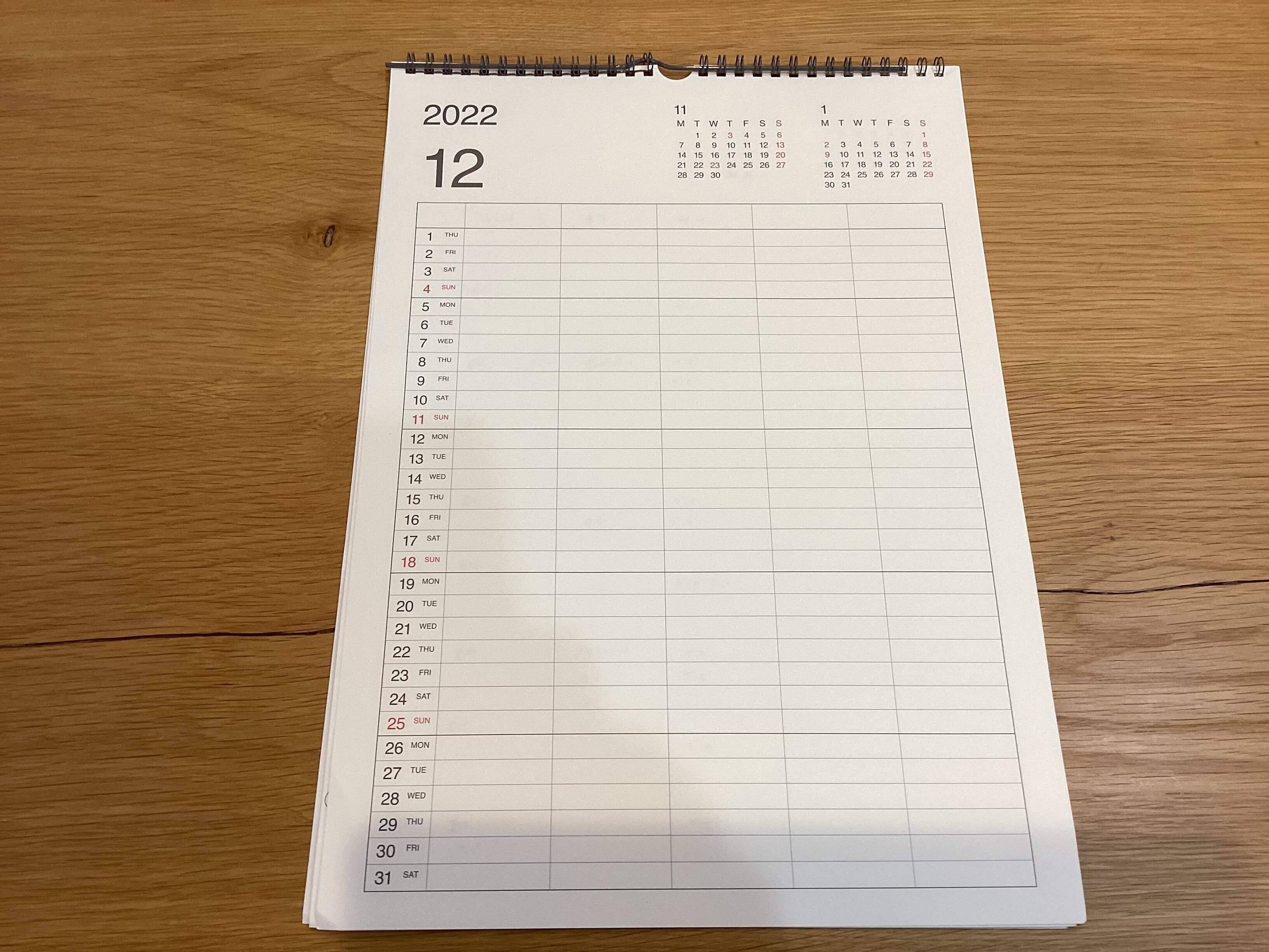 シンプルなデザインなのでインテリアの邪魔にならず、人によってさまざまな使い方ができる無印良品のカレンダー。