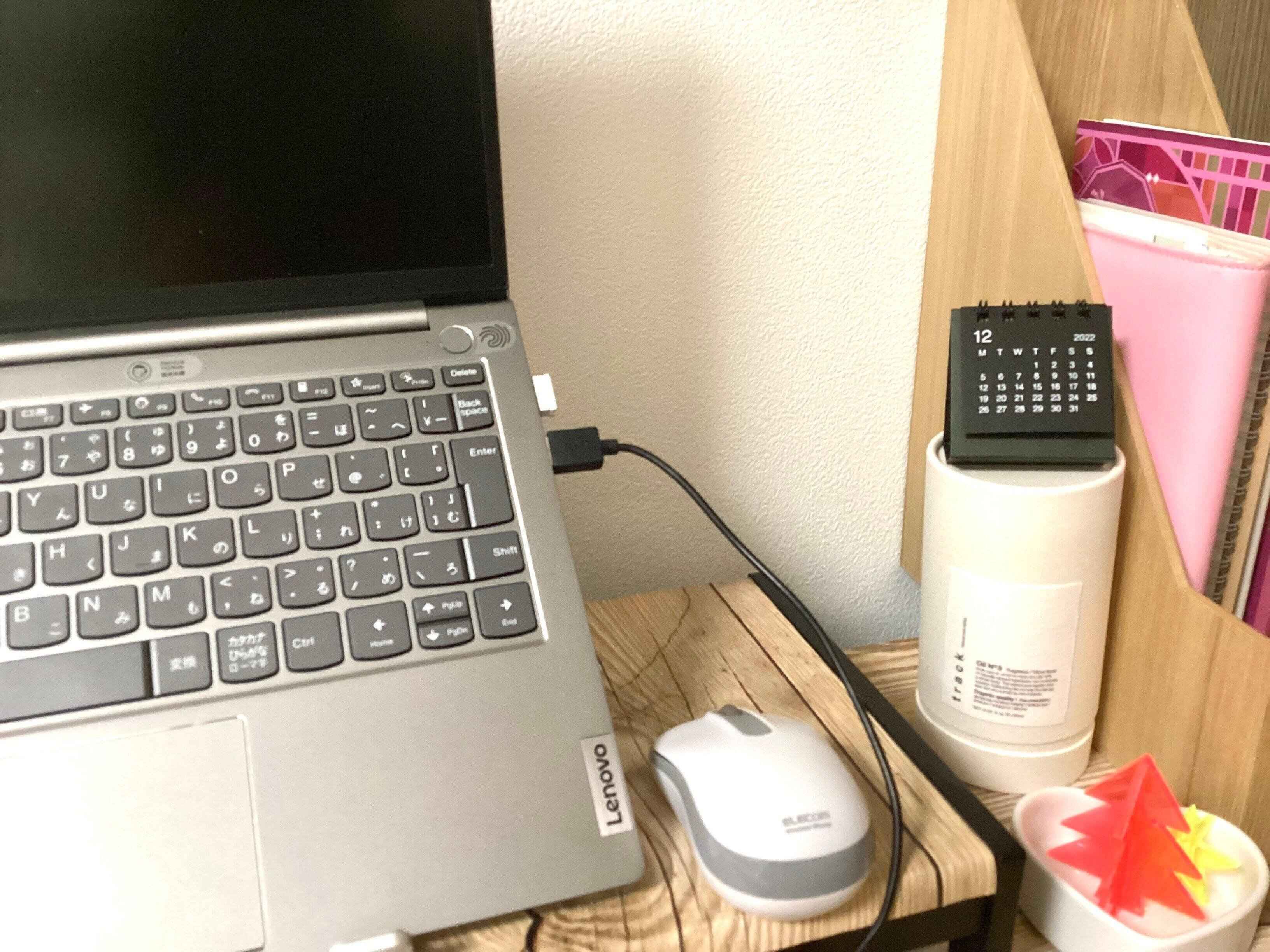 狭いデスクでも邪魔にならず、黒地に白の文字でオシャレです。