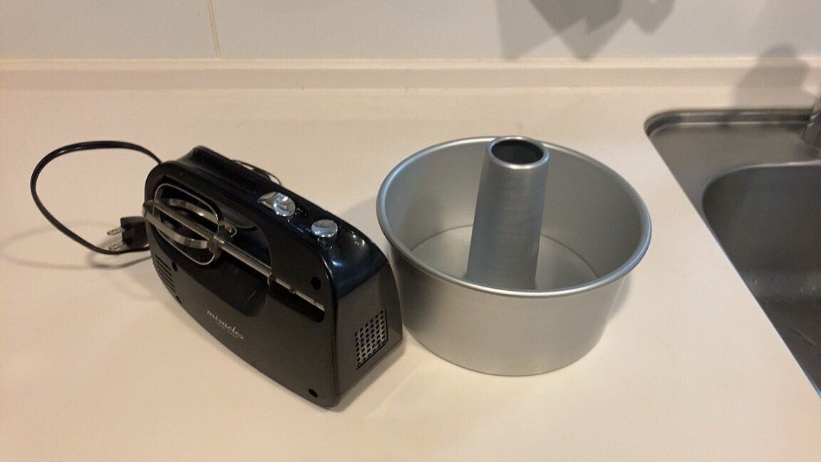 先日シフォンケーキ作りに初挑戦しました。オンラインレッスンで事前に必要な道具も教えてもらえたので、わが家にはなかったものをおすすめのお店で購入しました。ハンドミキサーとシフォンケーキの型です。