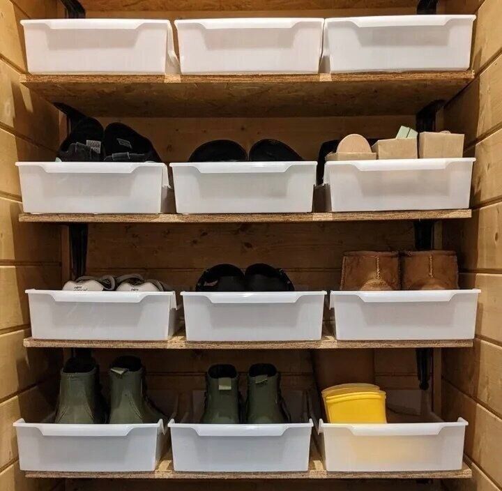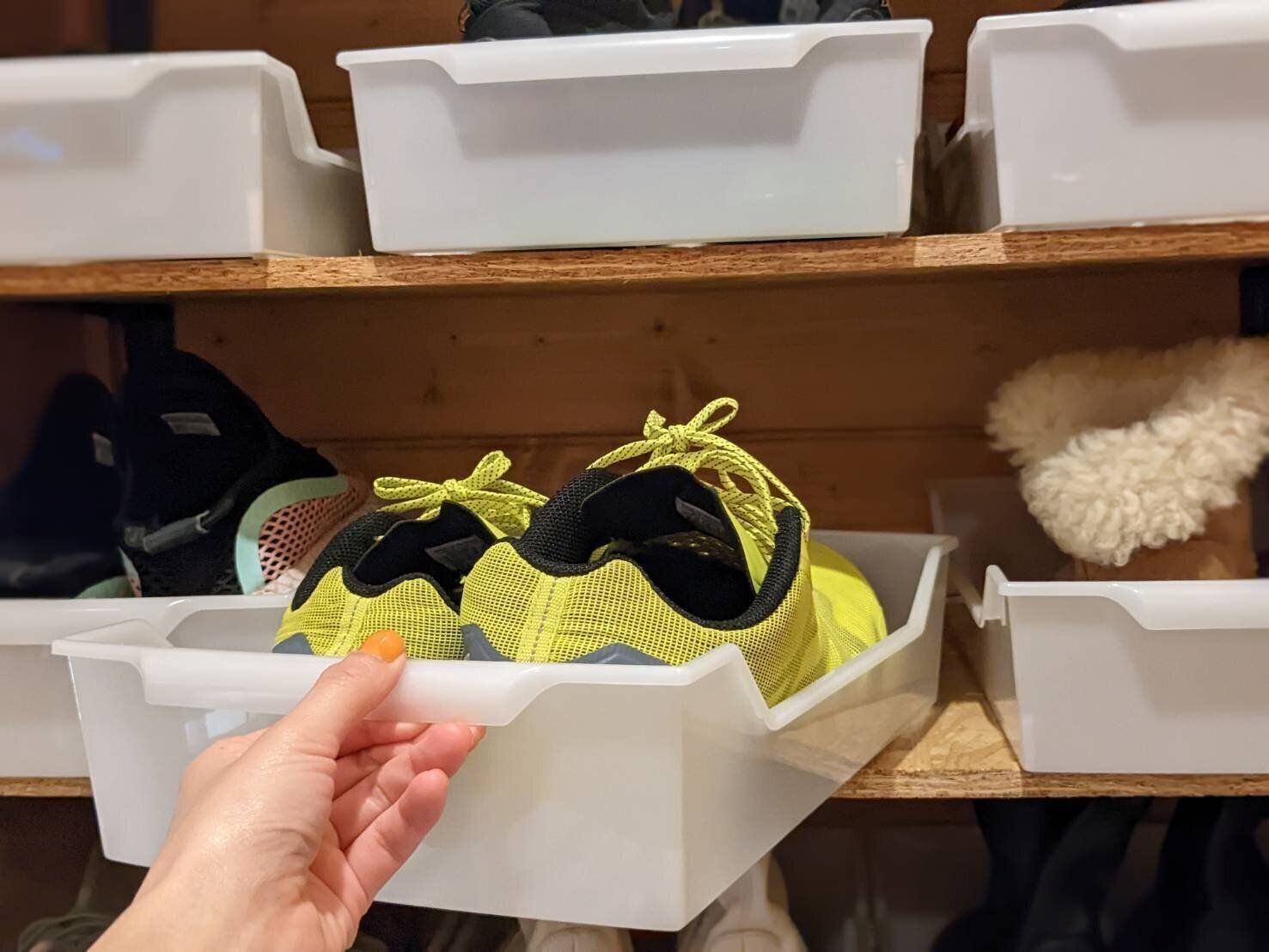 詰めればまだ入る靴箱も、トレーを使って靴に「指定席」を作ることで増えすぎ防止に。オープン収納でも、トレーのお陰で見た目がスッキリするのも嬉しいポイント。