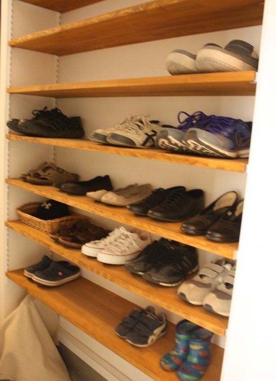 comayoさんの夫と子どもたちの靴は、全部で15足(撮影時は夫が1足履いて外出中)。夫6足、長男6足、次男3足です。学校用、休日用、雨の日用・・・・・・など、家族の靴もすべて用途が明確!「履かない靴は持たない」というシンプルな考え方で、おのずと数も絞られています。