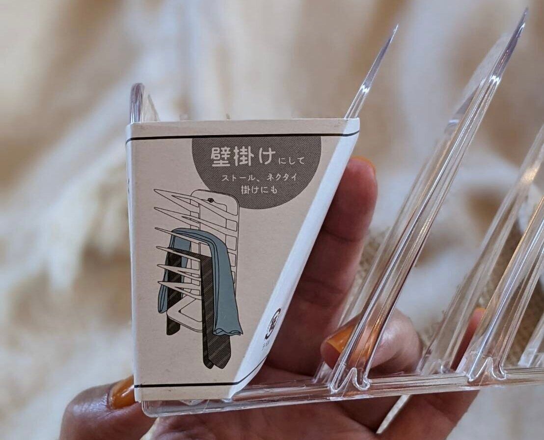 一見シンプルな仕切りスタンドに見えますが、このアイテムなんと2WAYなんです。壁掛けとしても使えること、仕切り幅や高さが絶妙なことから、ハンカチに限らず細かいモノの収納に使えると話題になりました。