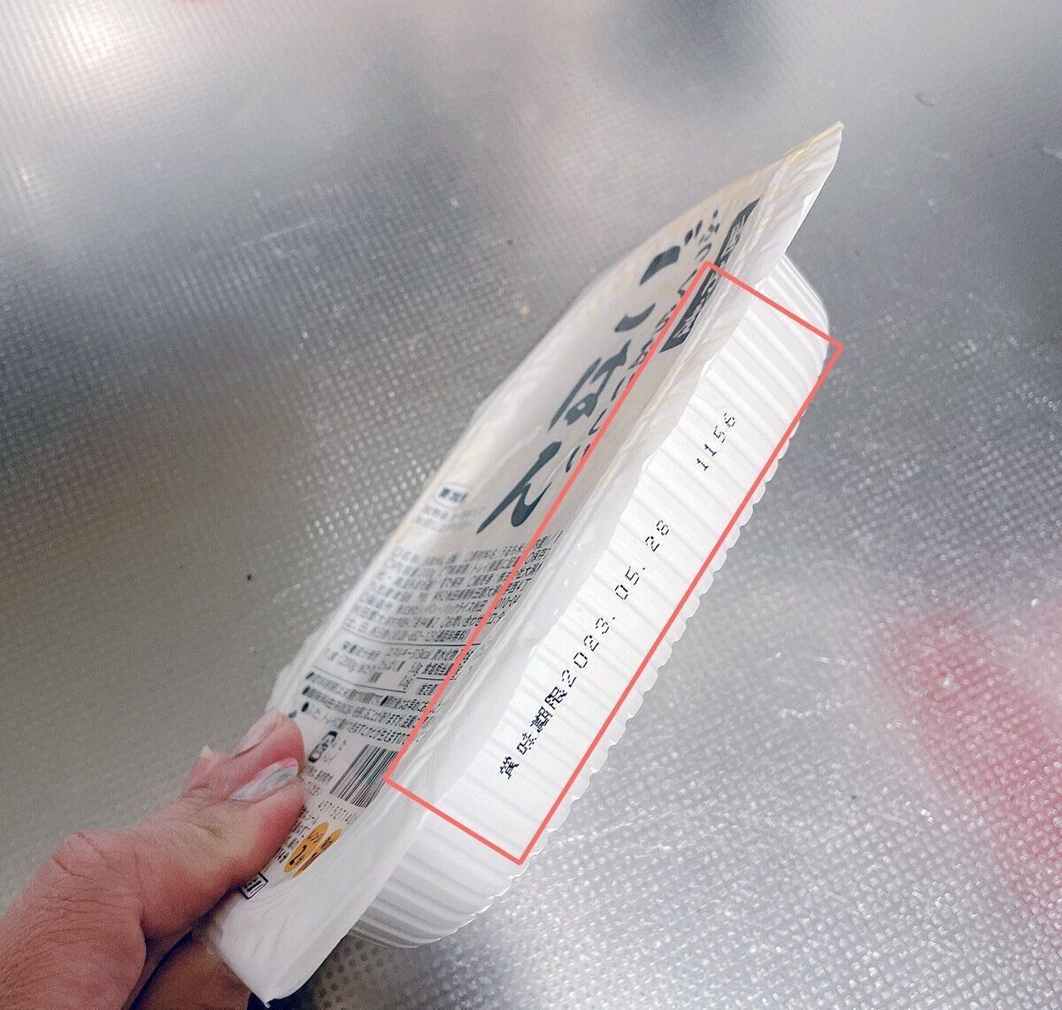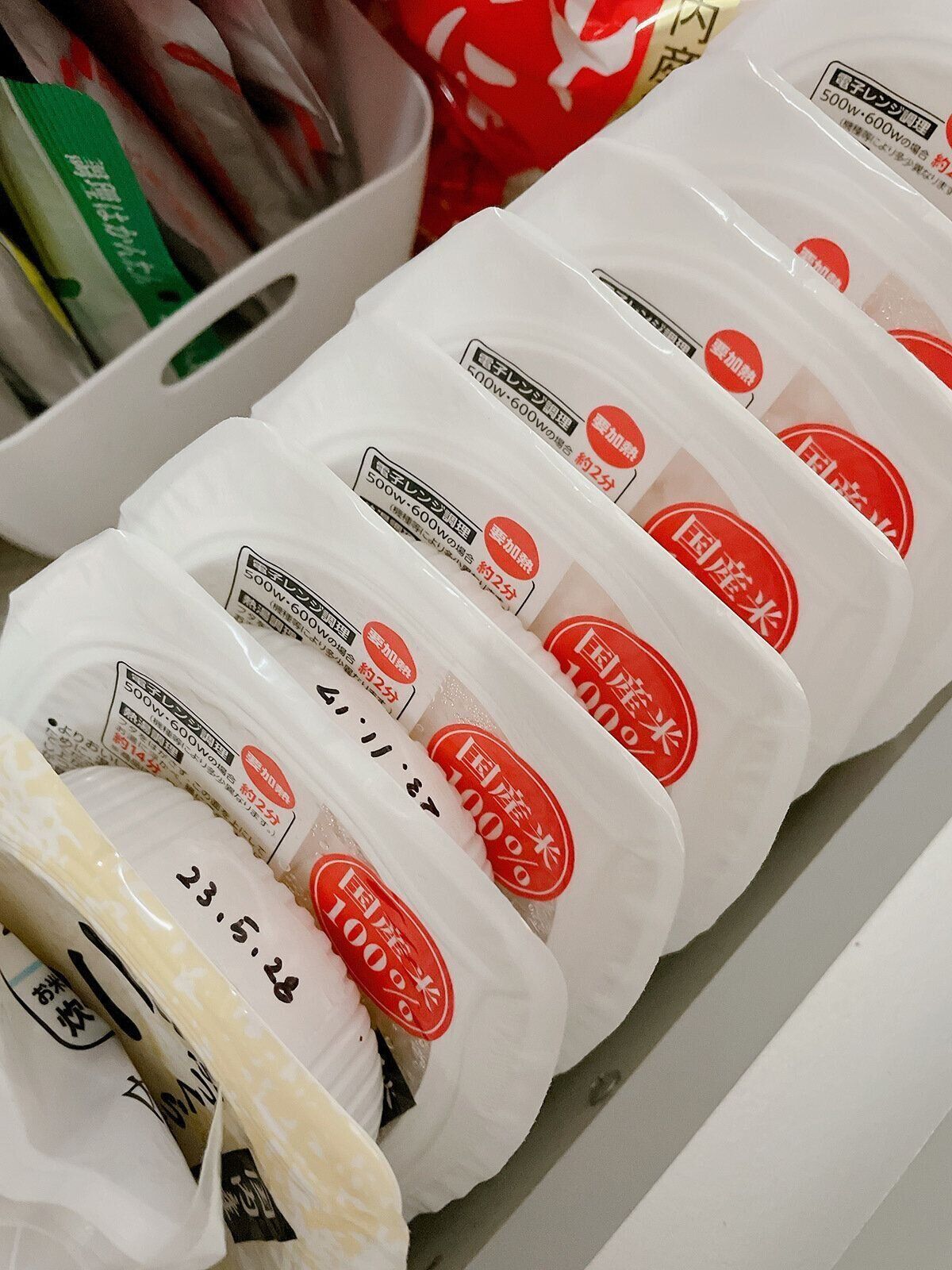パックご飯の場合は5個や10個のセットで購入するので、同じ期限ものは1つだけ貼っておきます。