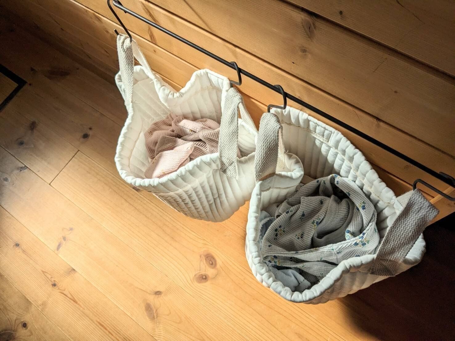 パジャマや肌着など、シワになっても気にならないモノは畳まずポイっと入れるだけ収納。お風呂上がり、我が子たちは各々のバスケットからガサゴソ取り出し着替えていますが、畳んでいなくとも何ら問題なし!